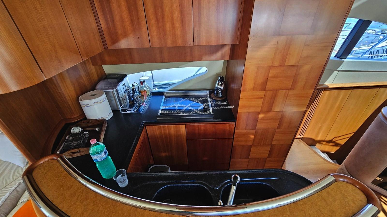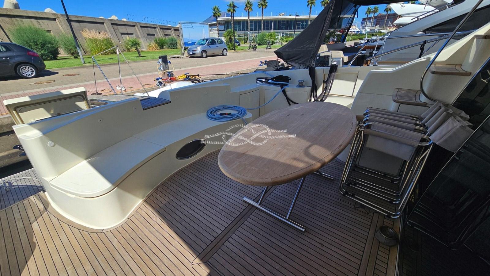 Alarme moteur, Alarme de pompe de cale, Eau sous pression, Système de vidange, Douche de cockpit, Double barre à roue, Flaps hydrauliques, Grue de flybridge, Extincteur(s) fixe(s), Passerelle, Plateforme arrière, Porte latérale, Cockpit en teck, Prise de quai, Connexion eau sous pression à quai, Rollbar, Guindeau électrique, Echelle de bain, Selles pour Annexe, Annexe, Corne, Winch électrique arrière.