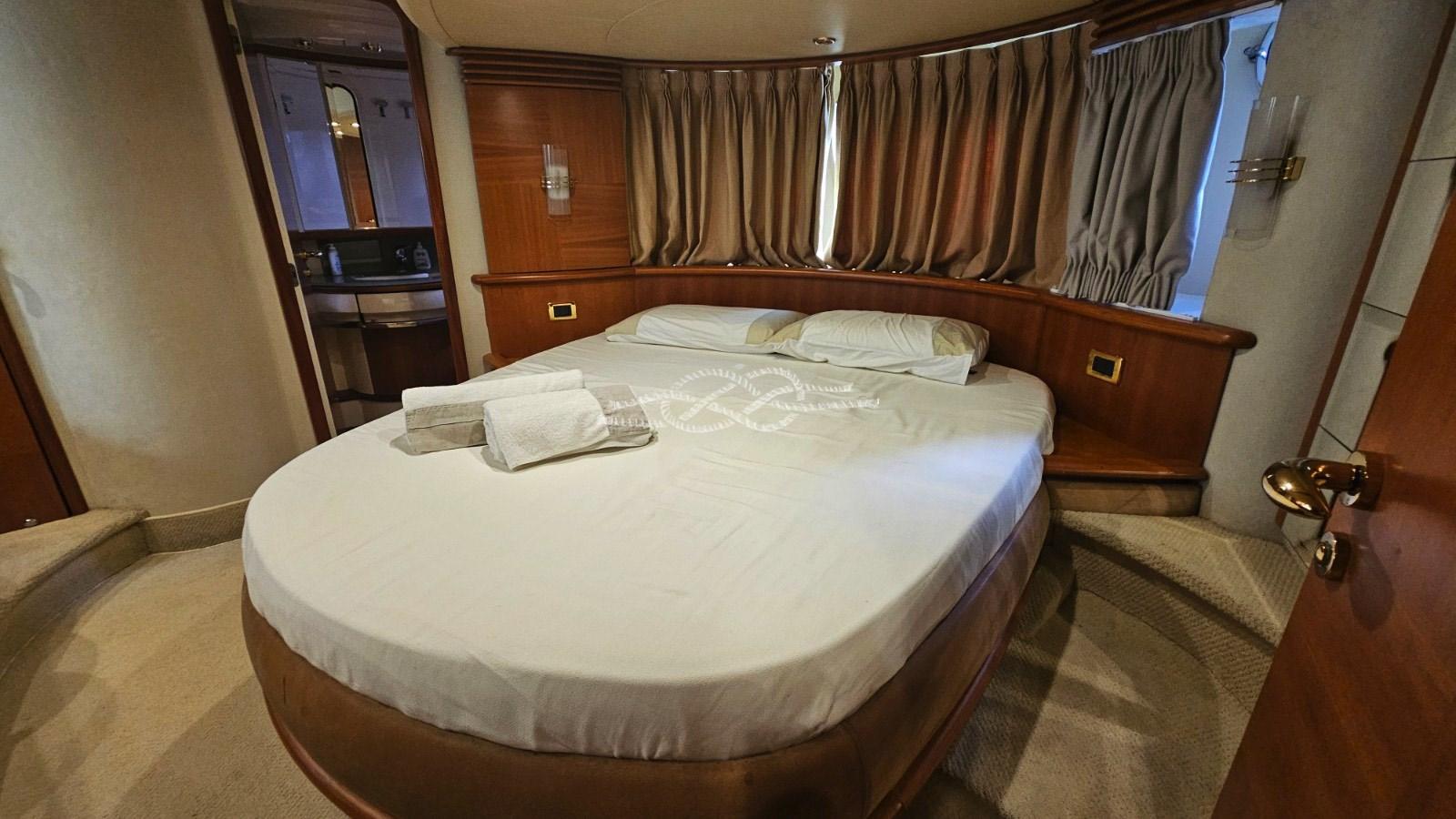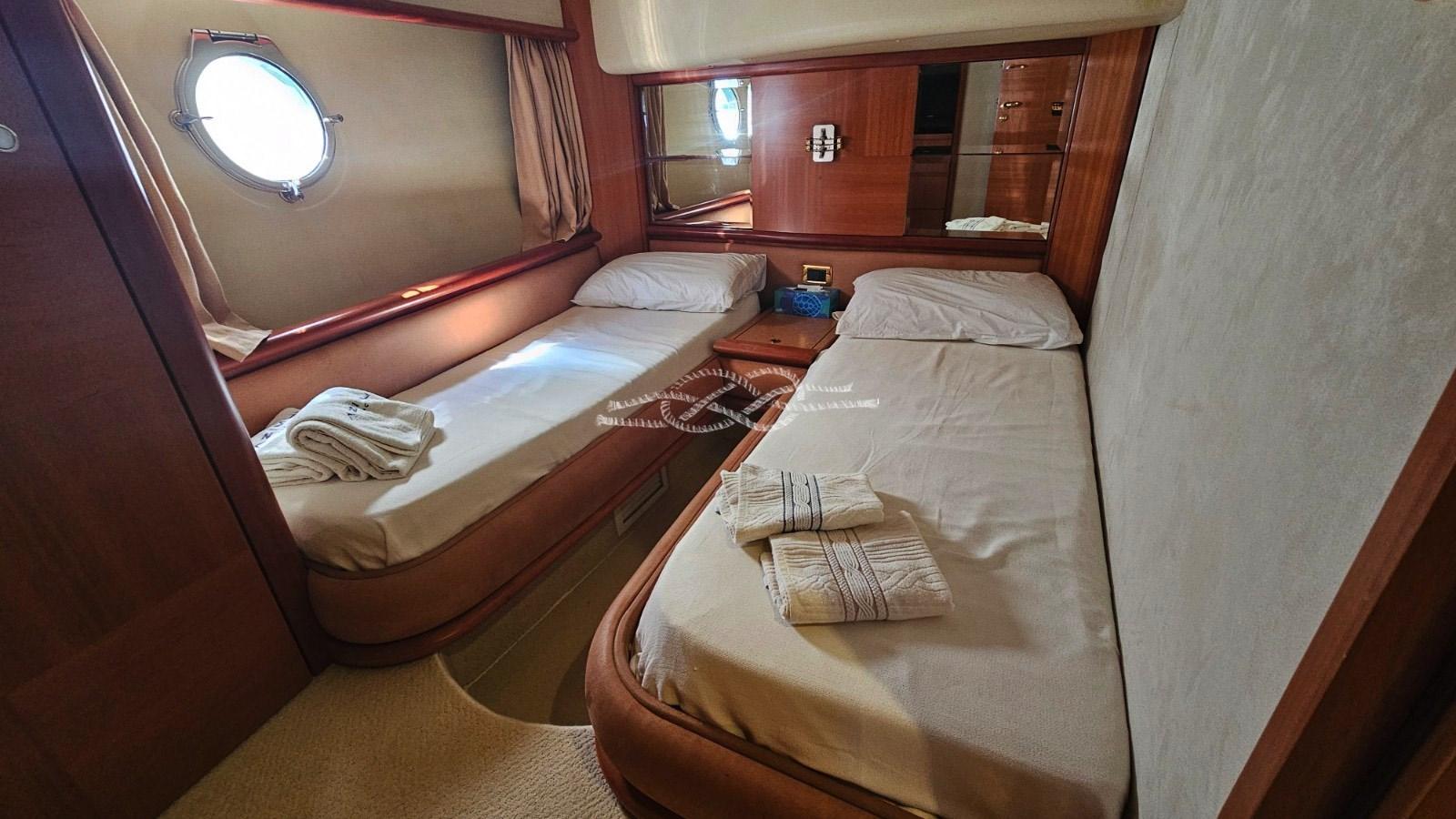 Cabine principale avec lit double, dressing et salle de bain - cabine VIP avec lit double, dressing et salle de bain - cabine invités avec deux lits plats et salle de bain.