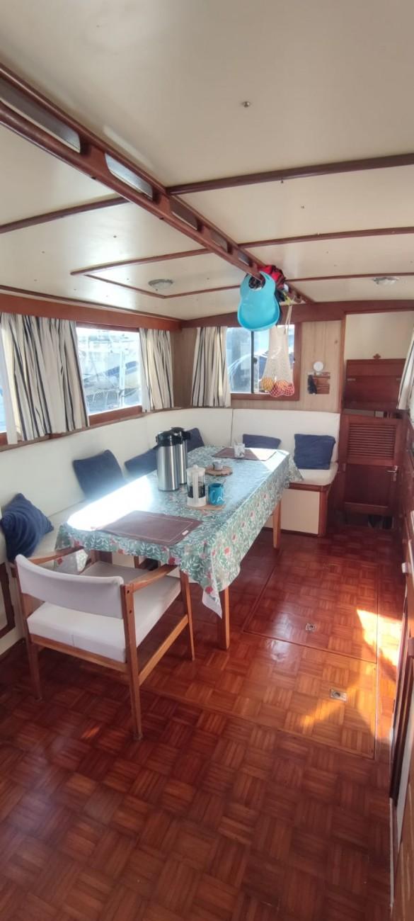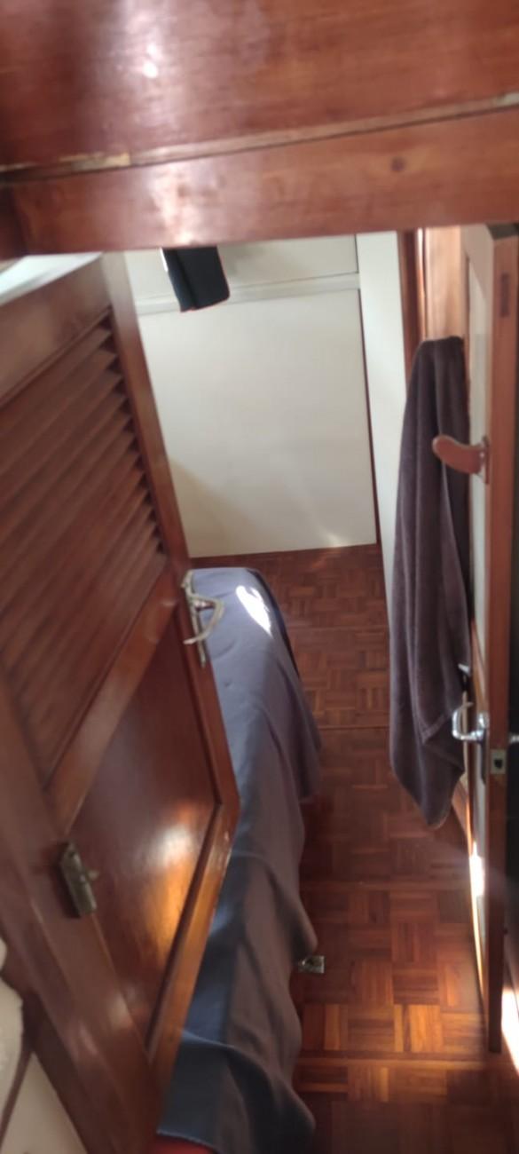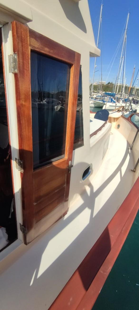 La coque en bois à été poncée à blanc lors du dernier carénage (août 2023) et contrôlée par un charpentier maritime.