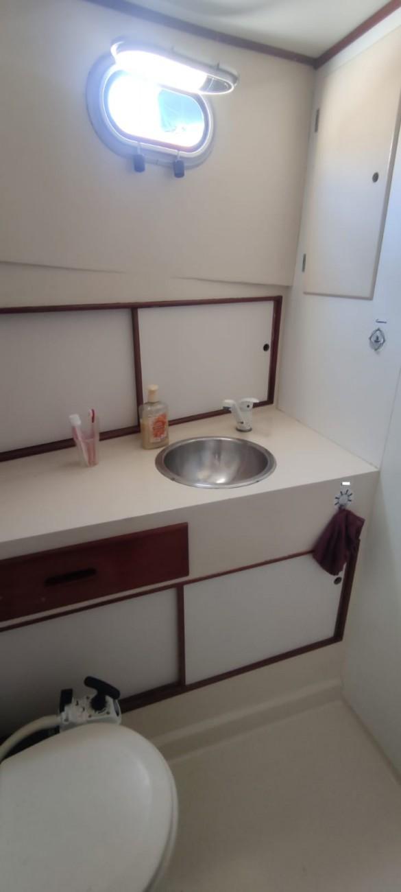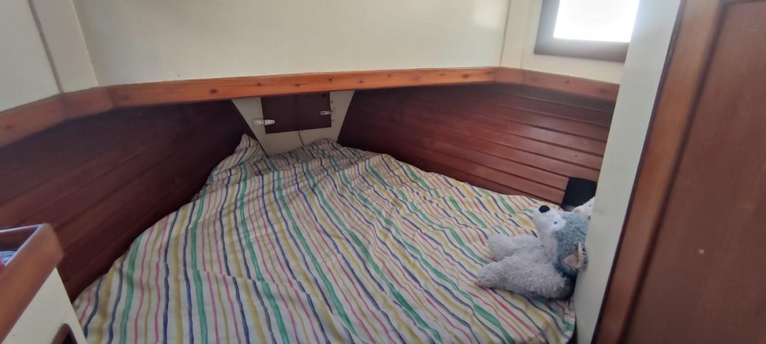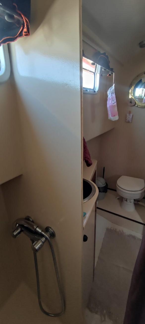 Une cabine deux couchages (convertible en un lit double) à la pointe avant avec Douche/SDB et WC manuels