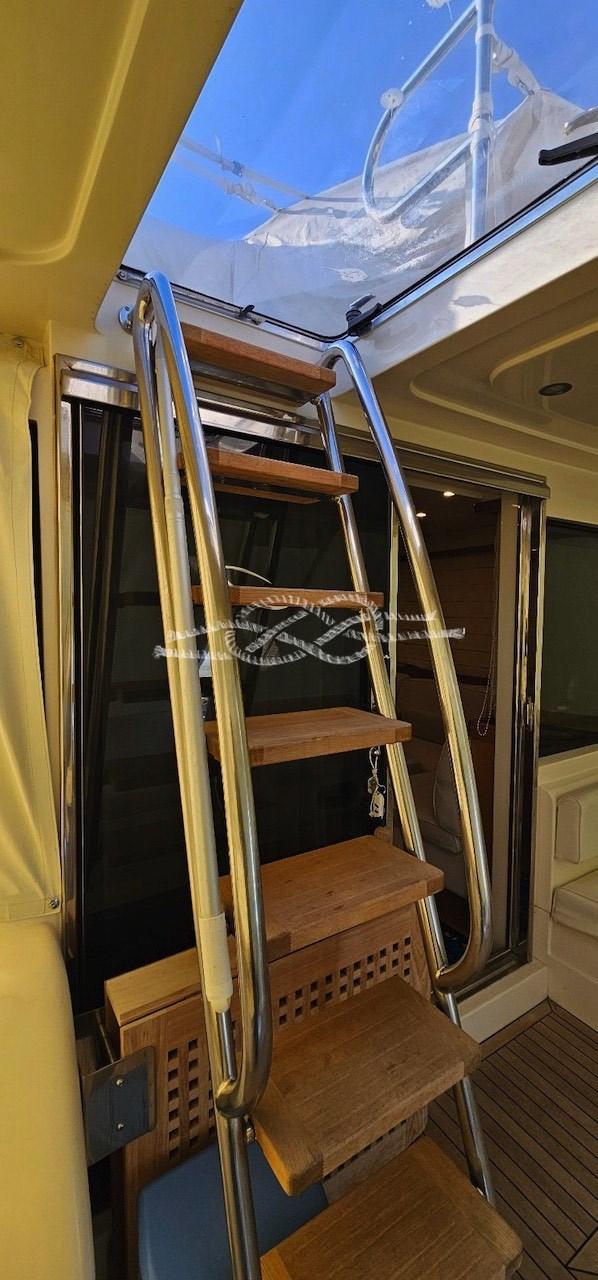 Alarme gaz, Alarme moteur, Alarme de pompe de cale, Eau sous pression, 6 Batteries, Passavant en teck, Douche de cockpit, Flaps hydrauliques, Indicateurs de flaps, Lavage de chaine, Passerelle, Plateforme arrière, Pompe de cale automatique, Pompe de cale manuelle, Cockpit en teck, Prise de quai, Connexion eau sous pression à quai, table de cockpit, Annexe, Corne, Winch électrique arrière.