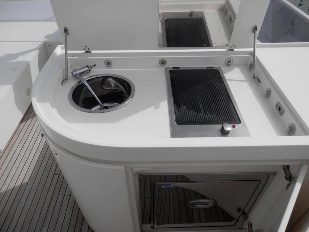 Propulseur d’étrave et de poupe Side Power - Antenne satellite Seatel - TV LCD rétractable dans le salon - meuble bar avec machine à glaçons, évier et plaque chauffante sur le flybridge - lumières sous-marines sous la plate-forme arrière - Lave-vaisselle Miele - Four Miele - Plaque de cuisson Miele - Réfrigérateur-congélateur Miele - Annexe Novamarine 4 m. avec hors-bord Yamaha 40 cv 4t.