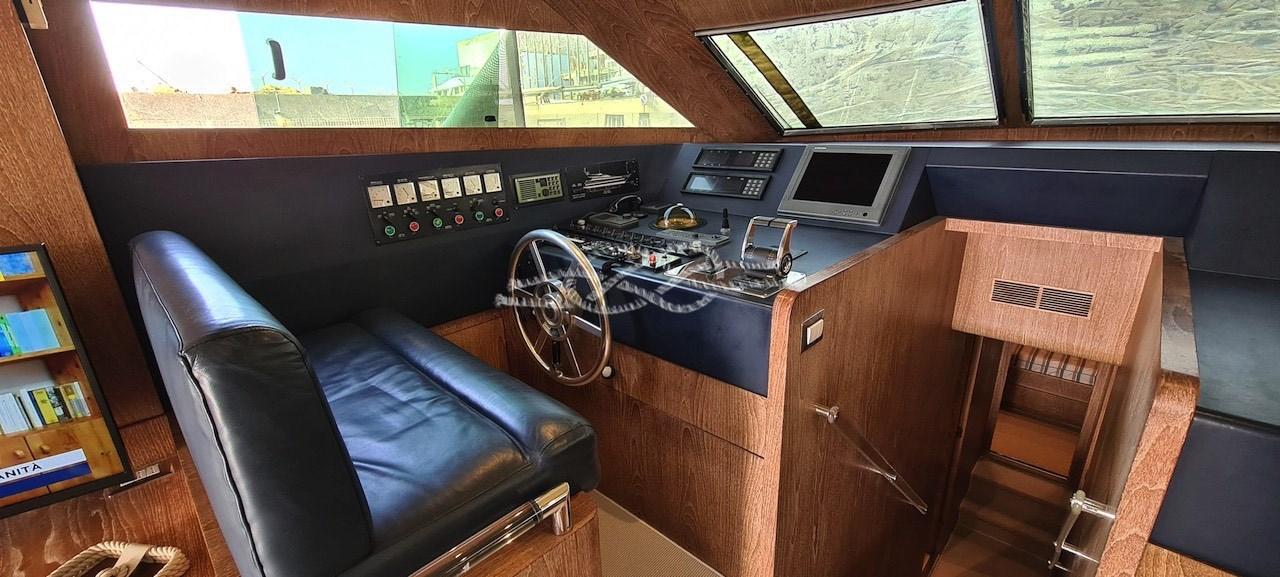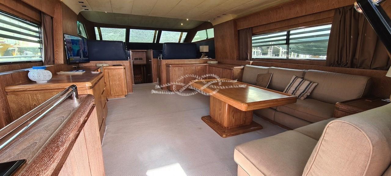 Alarme moteur, Alarme de pompe de cale, Eau sous pression, Passavant en teck, Douche de cockpit, Double barre à roue, Flaps hydrauliques, Indicateurs de flaps, Lavage de chaine, Passerelle, Plateforme arrière, Porte latérale, Prise de quai, Connexion eau sous pression à quai, Guindeau électrique, Echelle de bain, table de cockpit, Annexe, Corne, Winch électrique arrière.