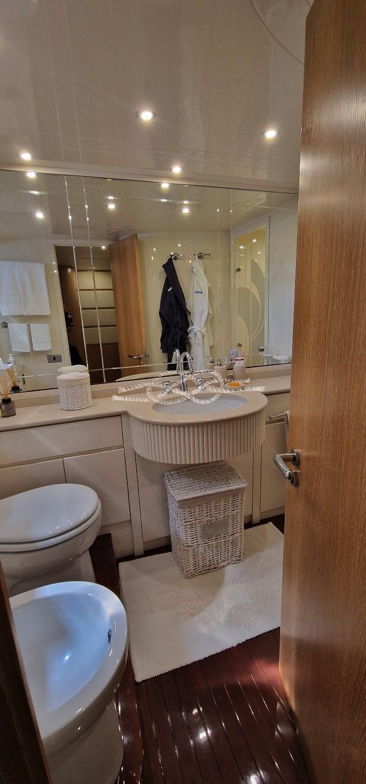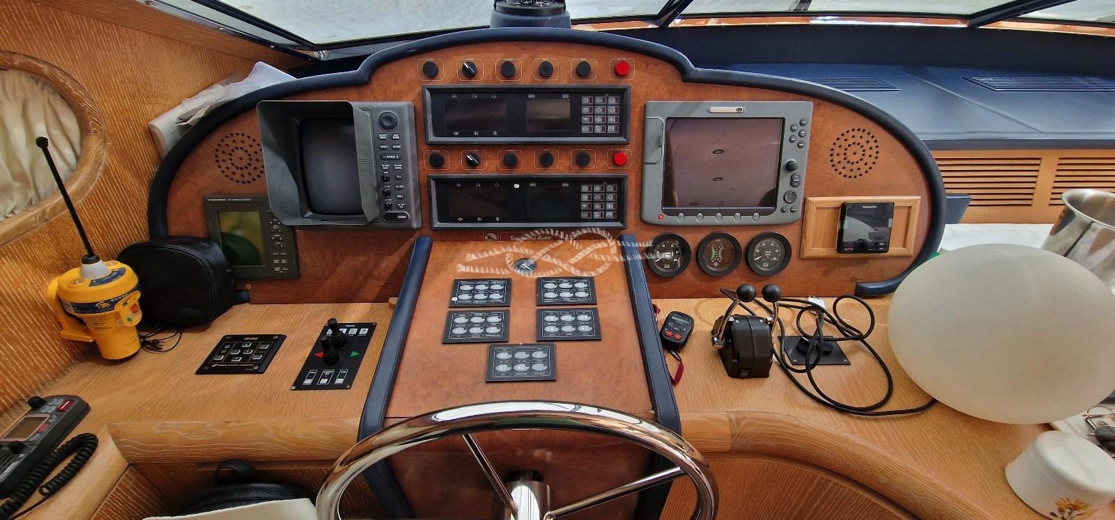 Alarme moteur, Eau sous pression, 16 Batteries, Système de vidange, Passavant en teck, Douche de cockpit, Double barre à roue, Phare de poursuite, Flaps hydrauliques, Grue de flybridge, Extincteur(s) fixe(s), Éclairage de courtoisie (LED), Passerelle (idraulica), Plateforme arrière, Porte latérale, Porte latérale, Cockpit en teck, Prise de quai, Connexion eau sous pression à quai, Rollbar, Guindeau électrique, Echelle de bain, Selles pour Annexe, table de cockpit, Annexe, Filières avec sortie latèrale, Corne, Winch électrique arrière.