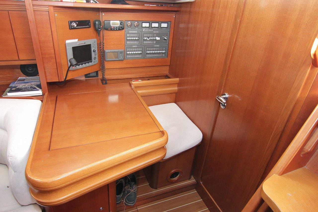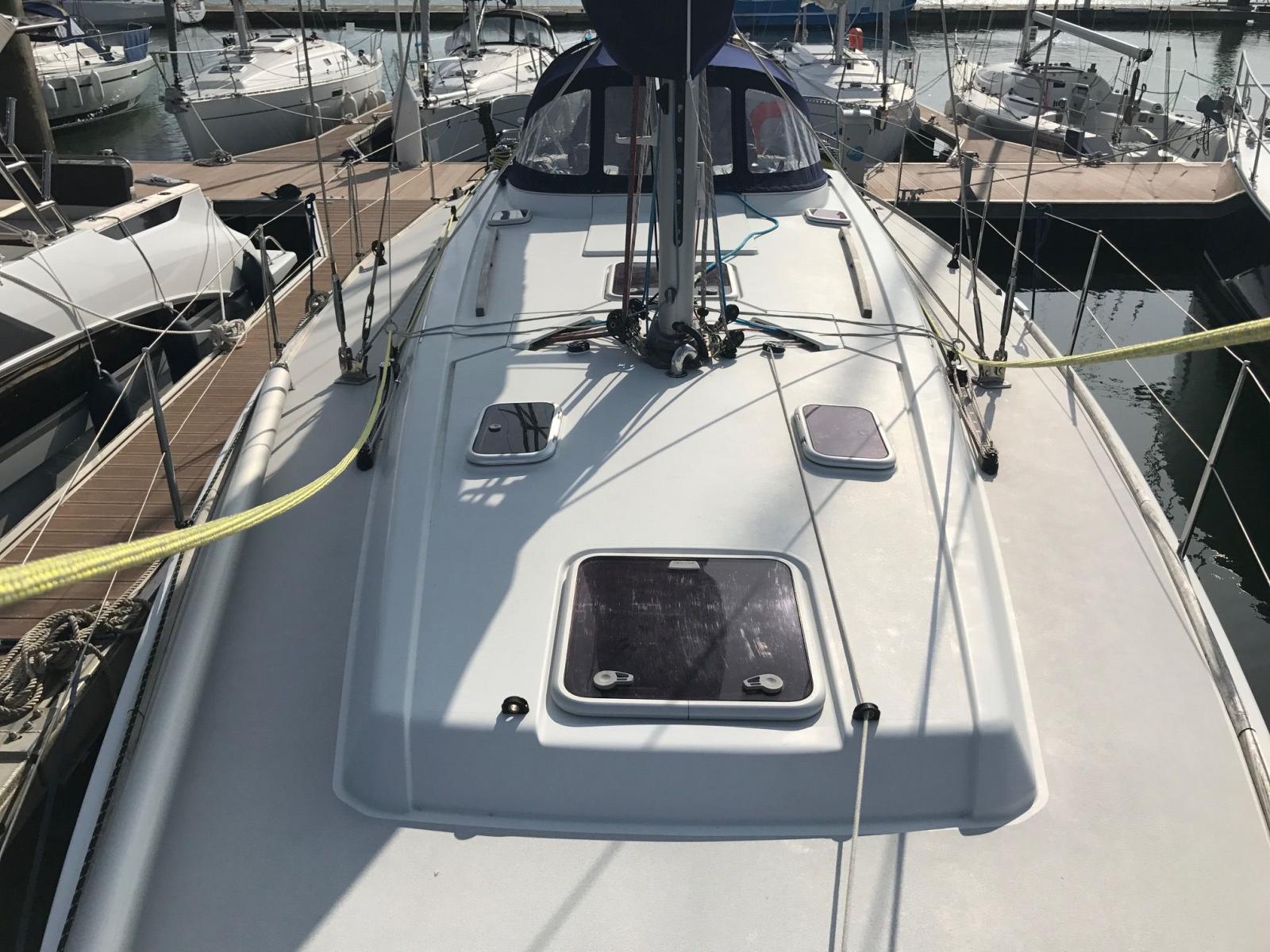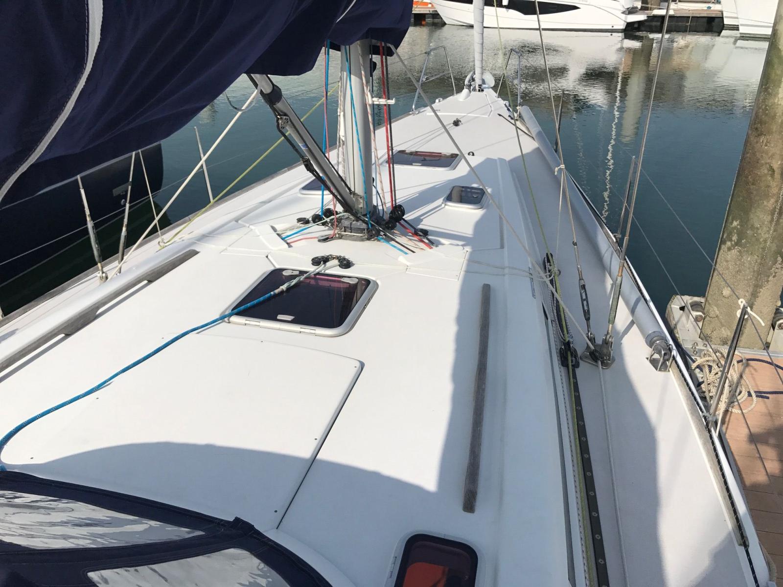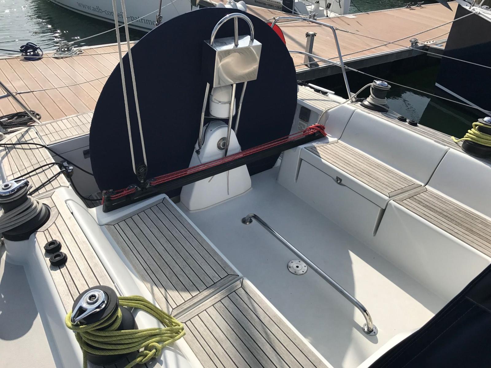 Peinture de coque refaite en 2016, moteur Volvo D2-55 CV 1000 h, joint de sail drive et coude d’échappement remplacés en 2023, vannes et passes-coques remplacés en 2024, toutes les batteries ont été changées en mars 2025, GV full batten North Sails, génois sur enrouleur All Purpose de 2021, Spi asymétrique incidence, lazy bag et lazy jack, hale-bas rigide, pataras réglable, 1 winch électrique, pont en teck, plateforme de bain avec échelle, capote de roof et bimini, guindeau électrique changé en 2015, douchette de cockpit eau chaude, chauffage à air pulsé, convertisseur 800 W 12/220 V, chauffe-eau, WC marin manuel, dessalinisateur à réviser, GPS Garmin Echomap UHD 72 CV au poste de barre (2022), loch/sondeur/speedo Raymarine ST60, girouette-anémomètre Raymarine ST60, pilote auto, radar Furuno 1623, VHF fixe Raymarine RAY54E, système audio Fusion MS-RA70, annexe 3D Tender Twin Vib Air 250 (2022).