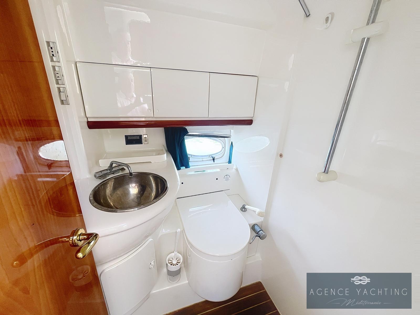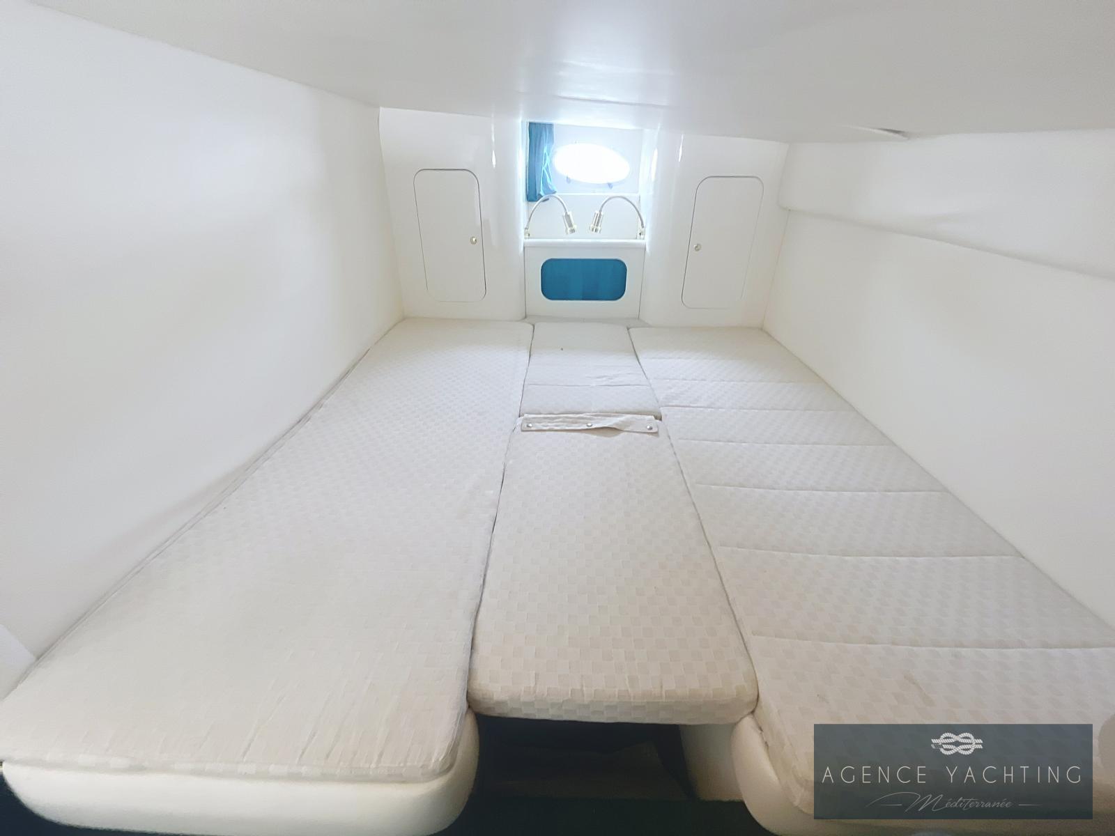 Le confort à bord est particulièrement soigné. La sellerie intérieure et extérieure ainsi que les tauds sont récents, et l’espace cockpit est équipé d’une douchette avec eau chaude et froide, d’un évier et d’un réfrigérateur extérieur. Les cabines sont spacieuses, lumineuses et parfaitement aménagées, idéales pour la croisière côtière en famille ou entre amis.