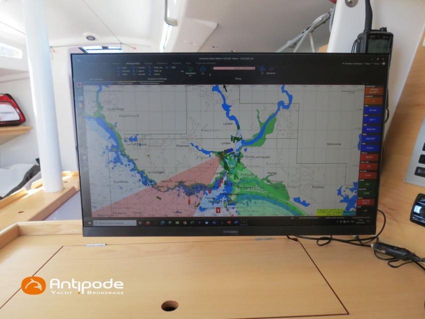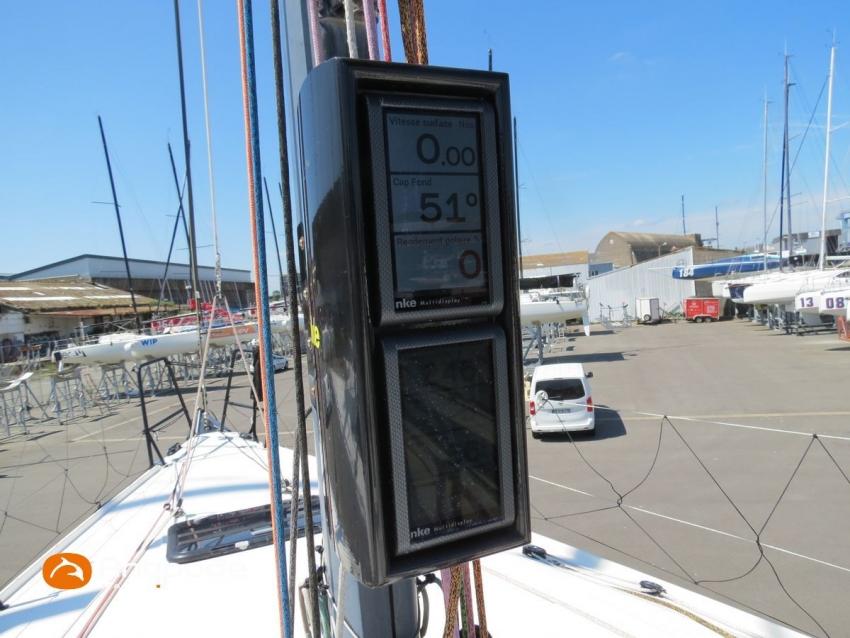 JPK 1080, 2019, Champion de France 2024 IRC Atlantique Manche, 1 er Armen Race 2023, 3 ème Fastnet 2023, version Airex polyvinilester, safrans JPK 1180 (avec dispositif de réglage du parrallélisme), stockage à terre, 1ère main, Volvo D1-20, 18 cv (463 h), Capote rigide de descente coulisante, Electro laquage noir chandeliers et balcons, Bout dehors carbone et sous barbe, Mât carbone et bome amuminium, Hale bas rigide, Gréement dormant Rod, Grand-voile - North Sails 3DI 2025, J 2 - North Sails 3DI 2025, Galette enrouleur Code 0 - Karver 2022, Spinnaker asymétrique A2 - North Sails 2025, 2 Tangons carbone, Drisses GV Génois Spi, écoutes génois, écoutes et bras de spi - Dyneema 2022 - 2022, 3 drisses de spi, Pataras - 2022, Pilote automatique in board avec vérin L & S - NKE Gyropilot 2, Box wifi - NKE, Girouette - NKE Carbowind HR, Apparent wind monitor - NKE, Sondeur - NKE, 2 afficheurs Multigraphic cloisons cockpit - NKE, 2 afficheurs Multidisplay en pied de mât - NKE, 2 telecommandes sans fil - NKE, GPS - NKE HF, Transpondeur AIS (émetteur récepteur) - Icom MA 500 TR, VHF à la table à carte - ICOM ICM 423 G, VHF portable - HX 870 E, Baromètre - Minisailor, Haut-parleurs VHF et radio cockpit, Balise de détresse - Epirb, Unité réfrigérante 12 V ouverture par le dessus, Eau sous pression, Pompe de cale électrique supplémentaire, Prise de quai 220 V + chargeur de batteries - Victron, Batterie moteur - AGM 70 amp 2020, Batteries service - Lipo 3 X 100 amp 2020, Convertisseur 12 V / 220 V - Victron, Contrôleur / gestionnaire de batteries, Feux de navigations de secours à Leds, Feu de tête de mât à Leds, Radeau de survie (révisé 2025) - 6 p, Visible Bretagne. Pour plus d'informations ou pour fixer un rendez-vous de visite, contact : Jérôme Le Joubioux 06 07 45 71 73 - [email protected]