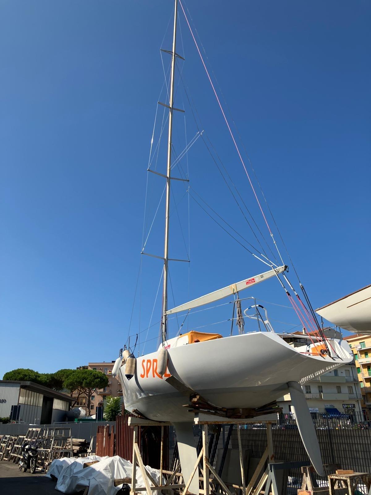 Traitement anti-osmose, profil de bulbe et de gouvernail, manœuvres de course et autres interventions importantes en 2024. 2024 voiles grand-voile, génois et foc en carbone. 2 espions.