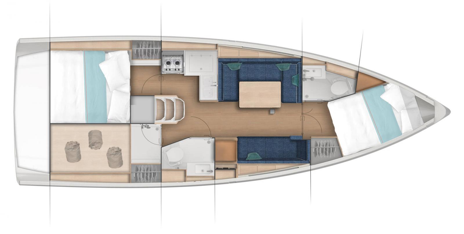 Sa carène puissante parfait l’expérience de navigation. En plus d’être particulièrement sécurisant avec ses passavants qui descendent vers le cockpit et ses hiloires confortables, ce Sun Odyssey bénéficie d’une bôme abaissée facilitant l’accès à la voile et augmentant la voilure.