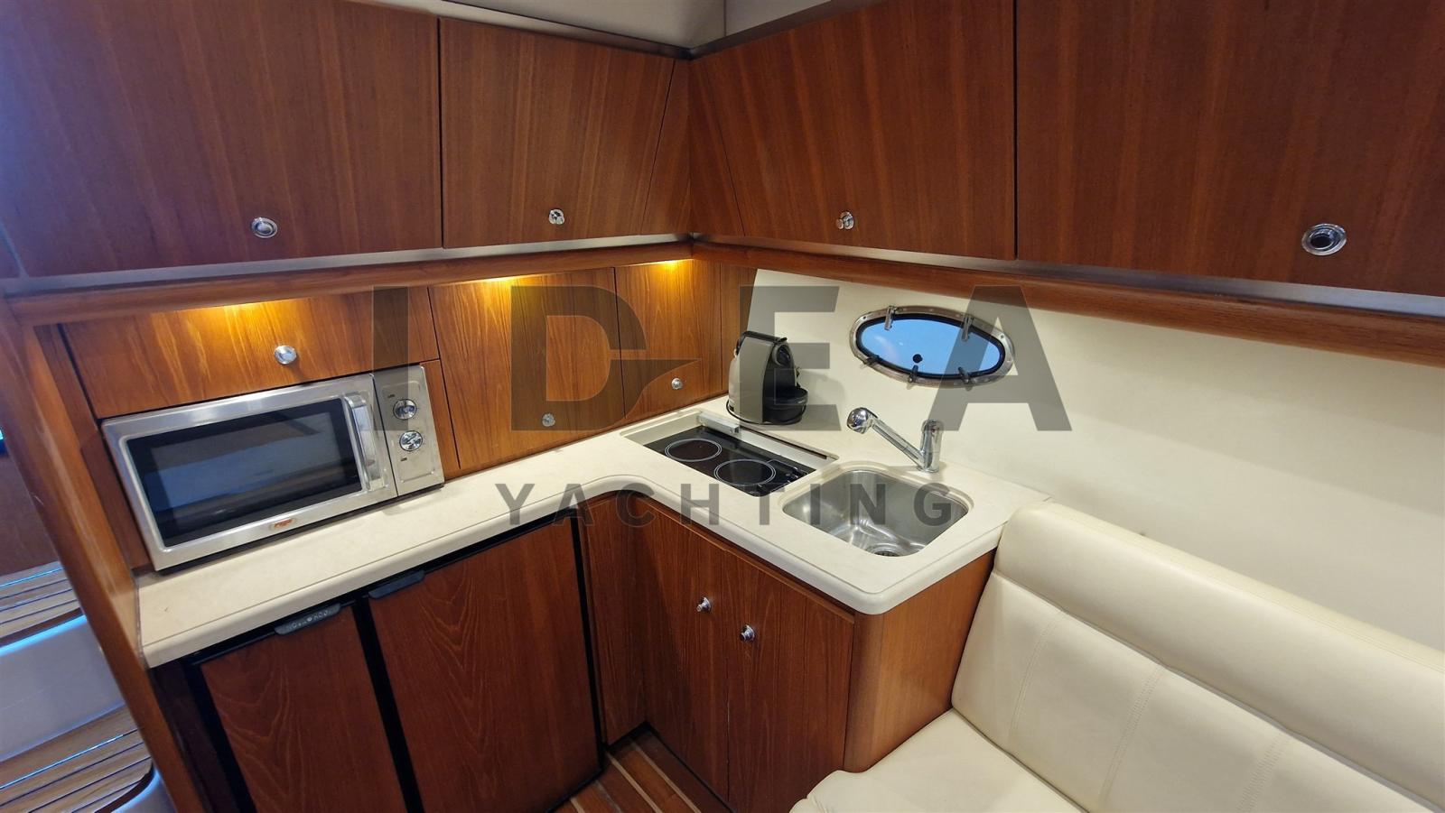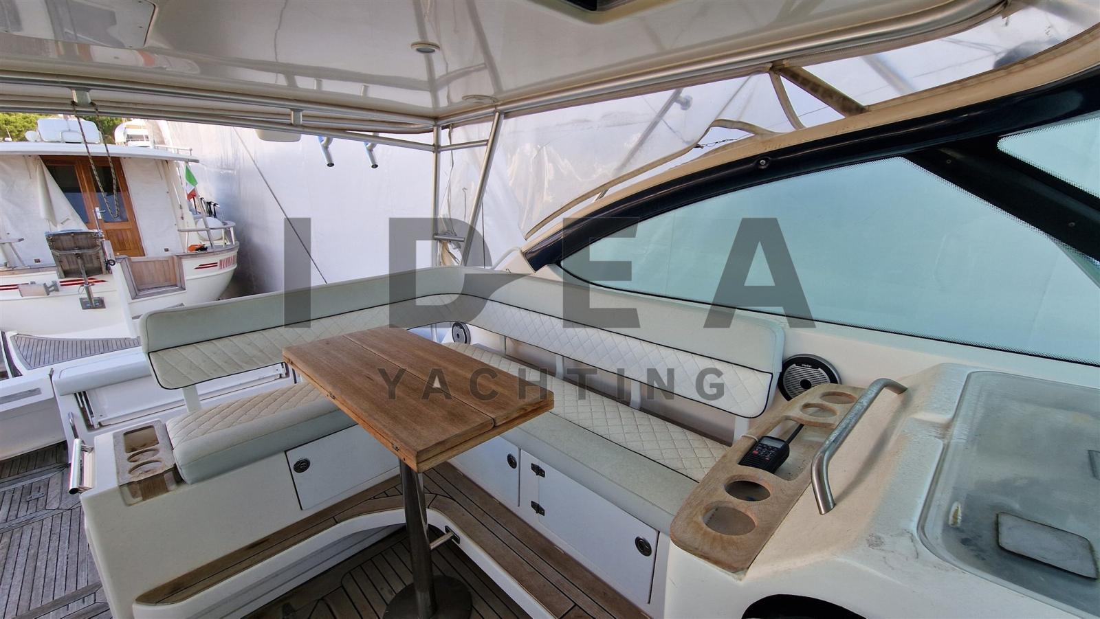 Alarme gaz, Alarme moteur, Alarme de pompe de cale, 3 Eau sous pression (1 sea water deck pump, 2 fresh water pump), Taquets pliants, 2 Chargeur de batterie (1 Quick 80A, 1 Charles 30A), Douche de cockpit, 2 Phares fixes arrière, Flaps électriques, Extincteur(s) fixe(s), Lavabo dans le cockpit, Éclairage de courtoisie, Passerelle (Opacmare Hydraulic), Plateforme arrière, Pompe de cale automatique, Cockpit en teck, Prise de quai, Guindeau électrique, Echelle de bain, table de cockpit (in teak), Table pliante de salon, Corne, T-Top, 2 Winch électrique arrière.