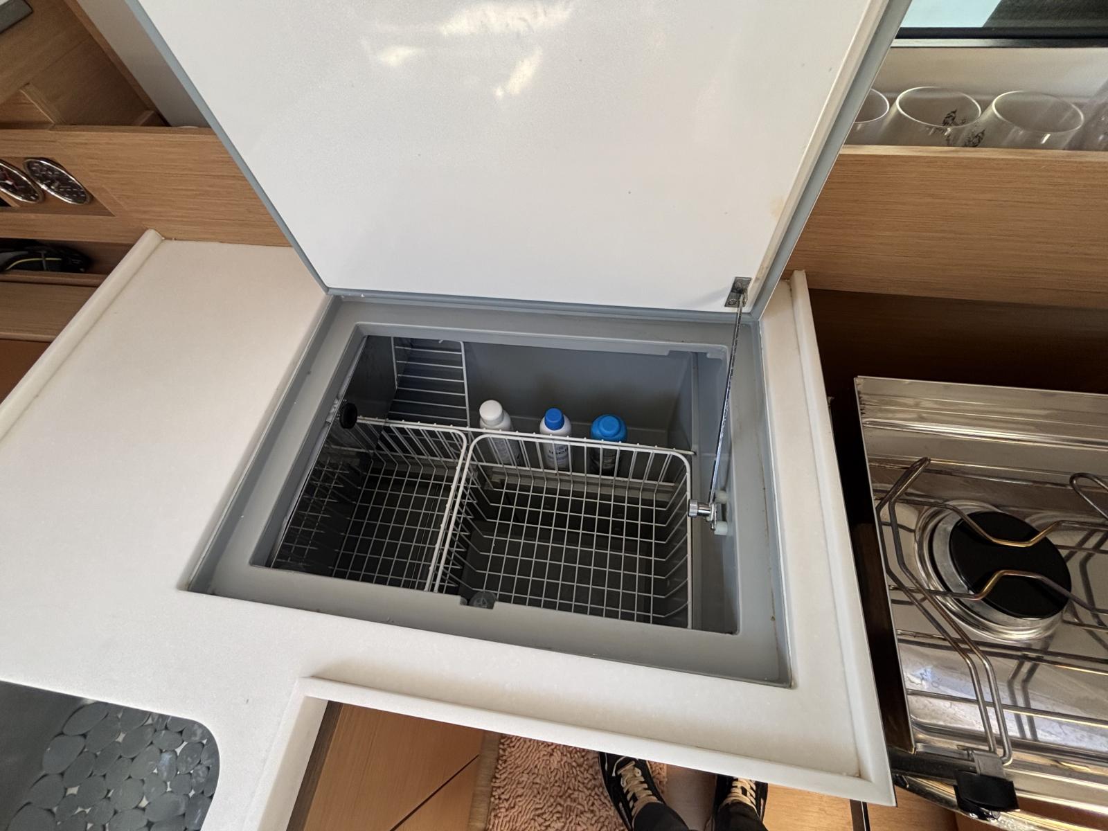 Tous les équipements de bord nécessaires à la croisière hauturière sont présents à bord. Deux cabines spacieuses vous offriront confort et intimité, tandis qu'un workshop convertible en cabine 1 personne vous facilitera le stockage et l'accès à votre matériel de bord.