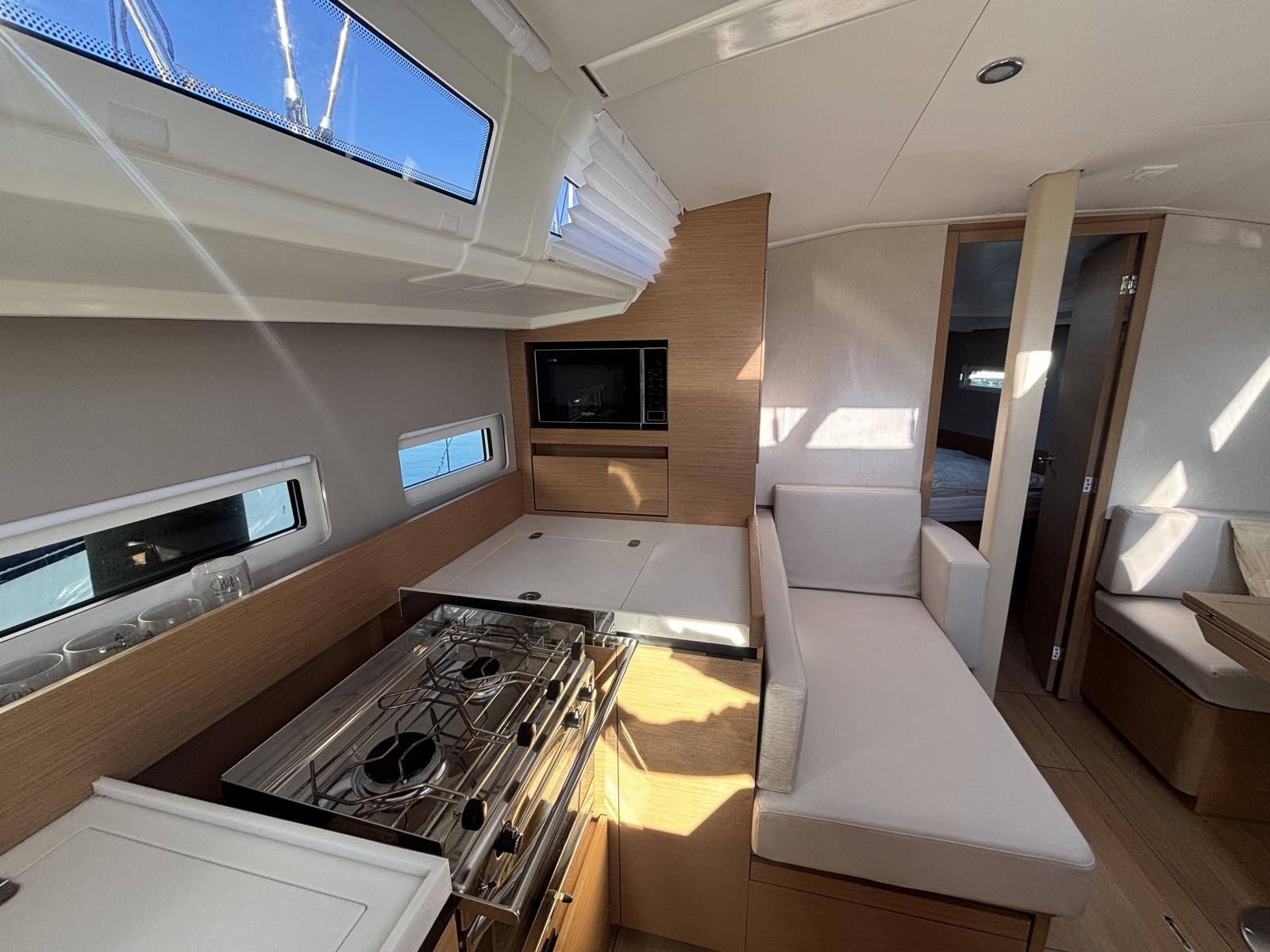 Cette gamme de chez Jeanneau a tout pour plaire, à l'intérieur avec son aménagement moderne et inédit, comme à l'extérieur avec des innovations telles que les passavants accessibles directement via le poste de barre ce qui facilite grandement les manœuvres et l'accessibilité au pont.
