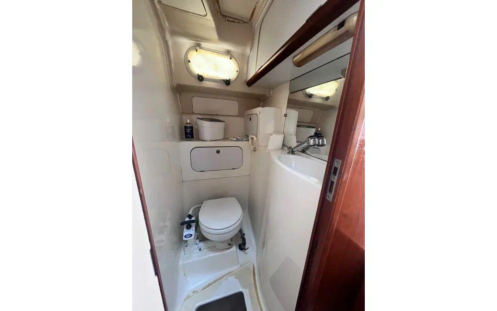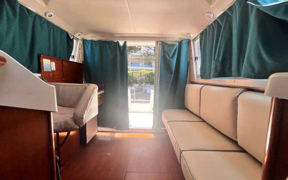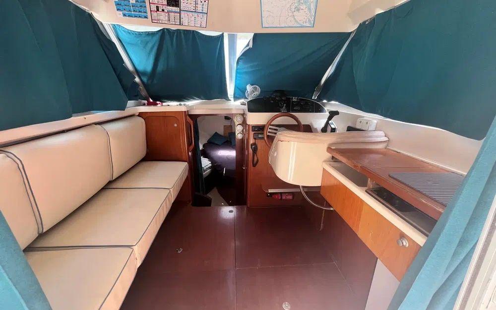 Préparez vos glaçons : le réfrigérateur est prêt, tout comme la cuisinière, le WC marin, et même la douchette à eau douce sur la plateforme arrière. Naviguez l’esprit tranquille grâce au propulseur d’étrave, au guindeau électrique, au GPS, au pilote automatique et à la VHF.