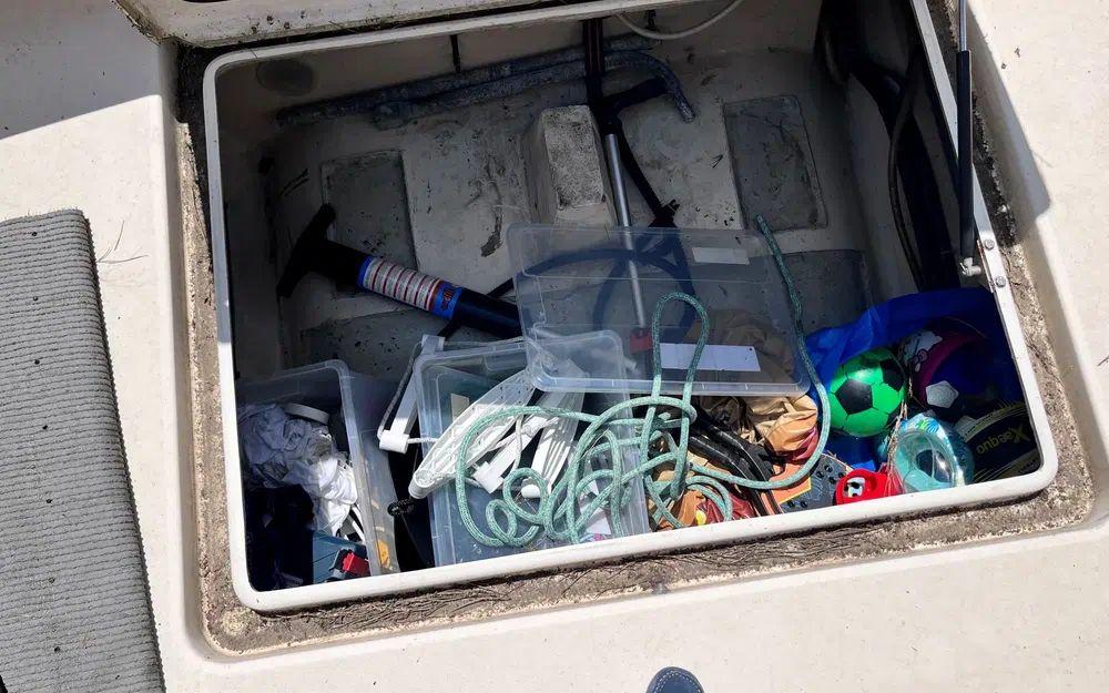 Les gourmands d’électricité sont servis : circuit 220V, 12V, prises un peu partout, chargeur de batteries, batteries de service, tout y est. Et bien sûr, pour le plaisir et la sécurité, l’armement est complet, amarres, défenses, ancre, passerelle, et même les fusées de détresse (sans les feux d’artifice à la fête du port).