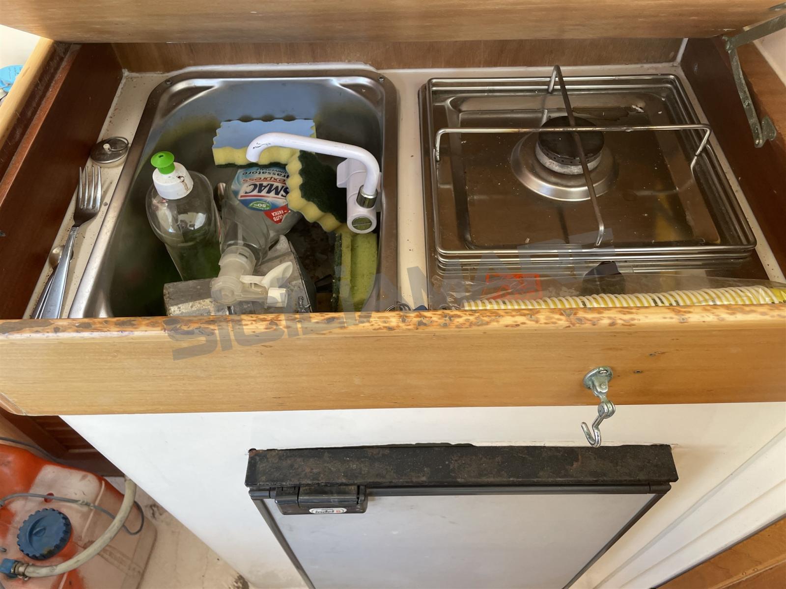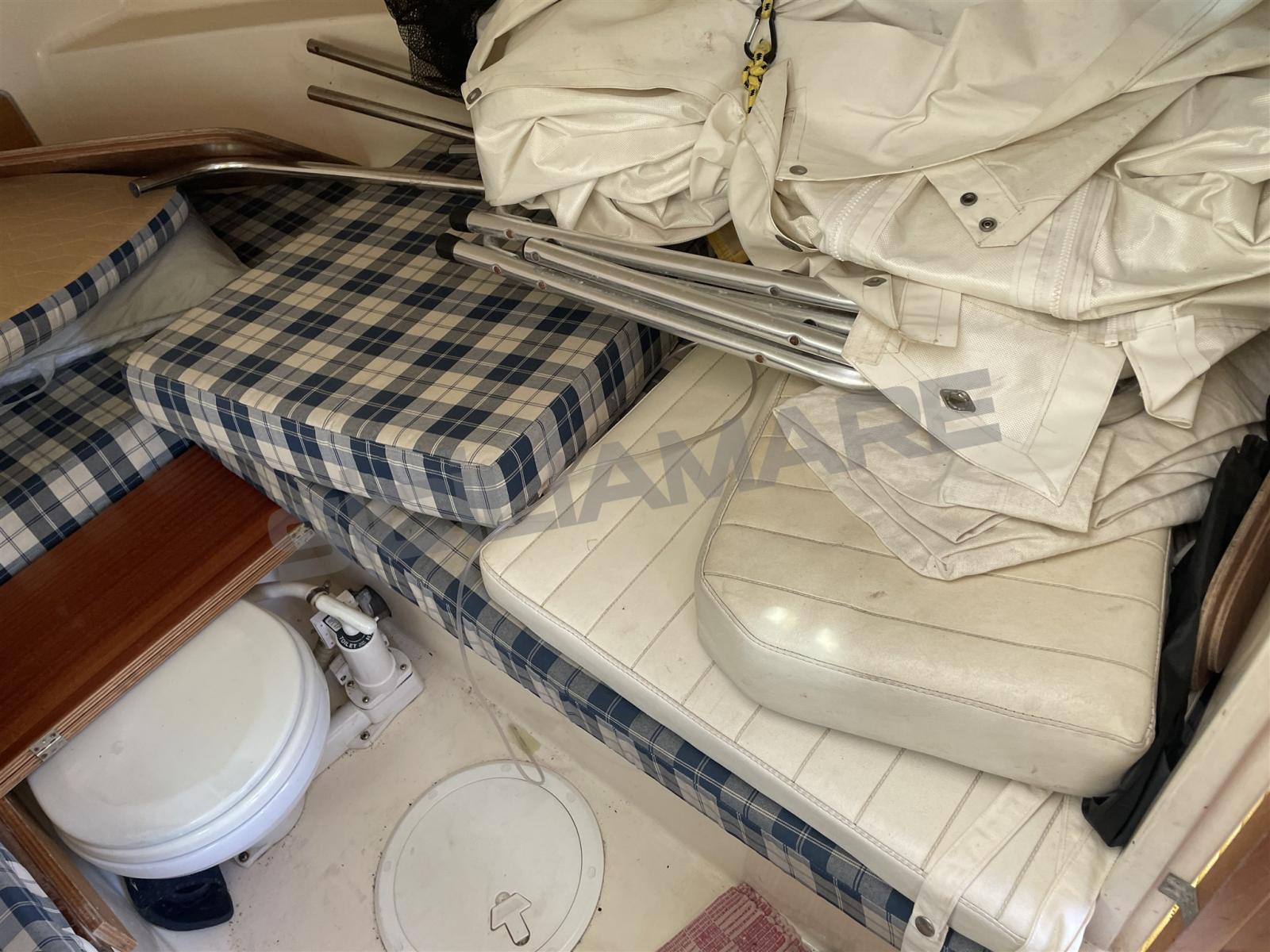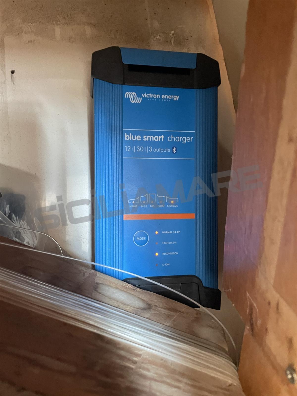 Alternateur, Eau sous pression, 2 Batteries (100 Ah (Motore + Servizi)), Douche de cockpit, Double barre à roue, Plateforme arrière, Pompe de cale manuelle, Prise de quai, Guindeau électrique, Echelle de bain, Chaise support HB.