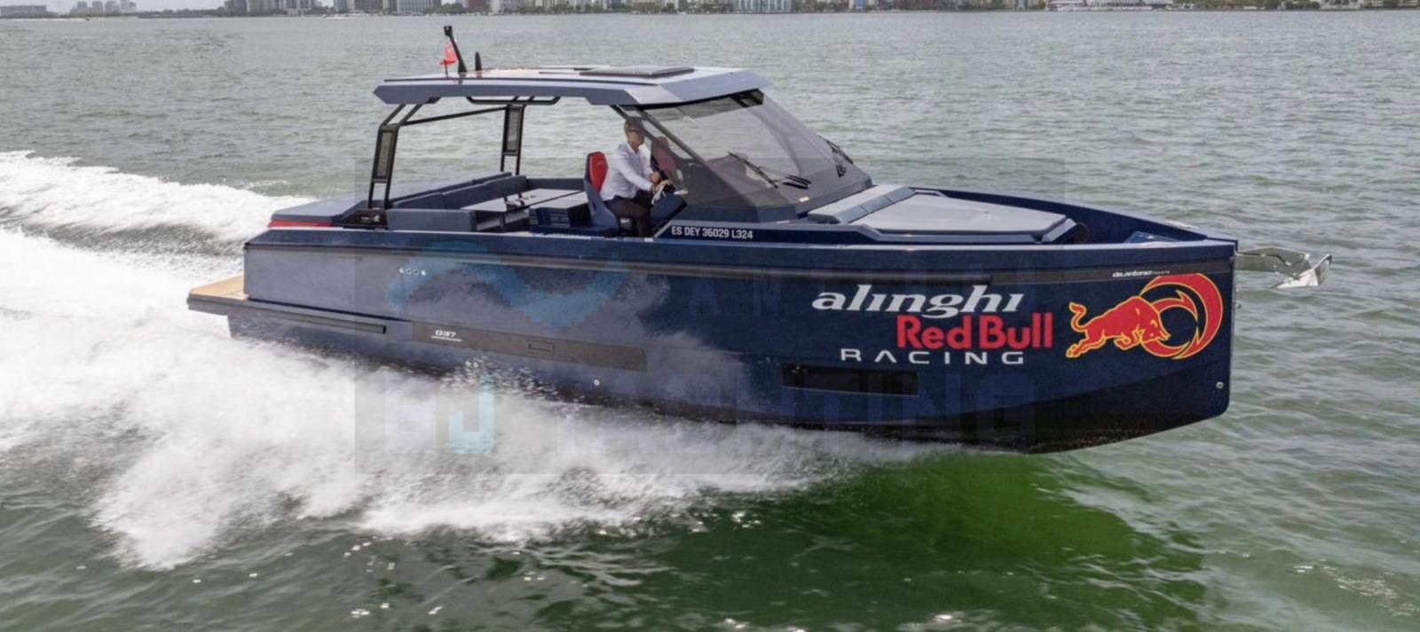 Magnifique De Antonio D37 (édition spéciale "Alinghi Red Bull Racing") créée pour célébrer le partenariat avec l'équipe Alinghi Red Bull Racing, challenger officiel de la 37e America's Cup.