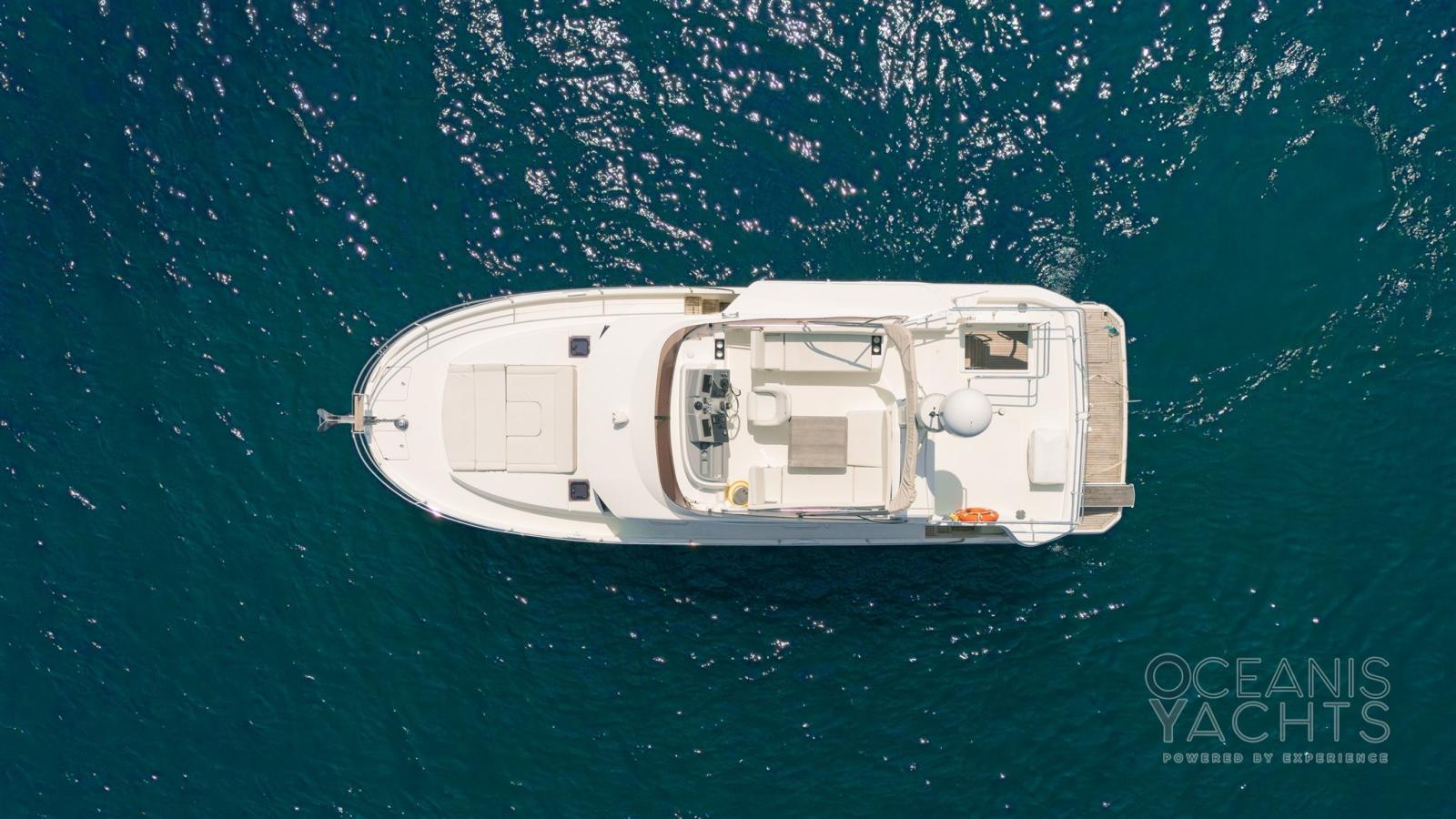 Le double moteur Volvo Penta de 2×300 ch assure puissance et sécurité à chaque mouvement, tandis que les joysticks et les volets électriques simplifient les manœuvres les plus délicates.
