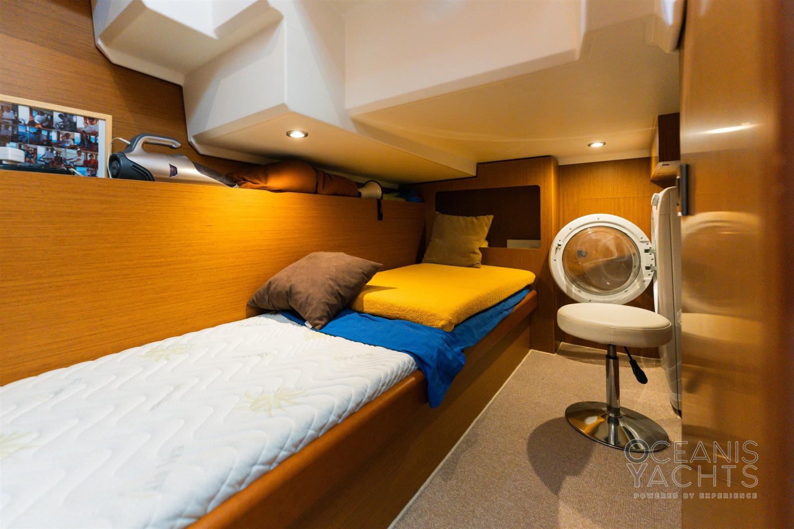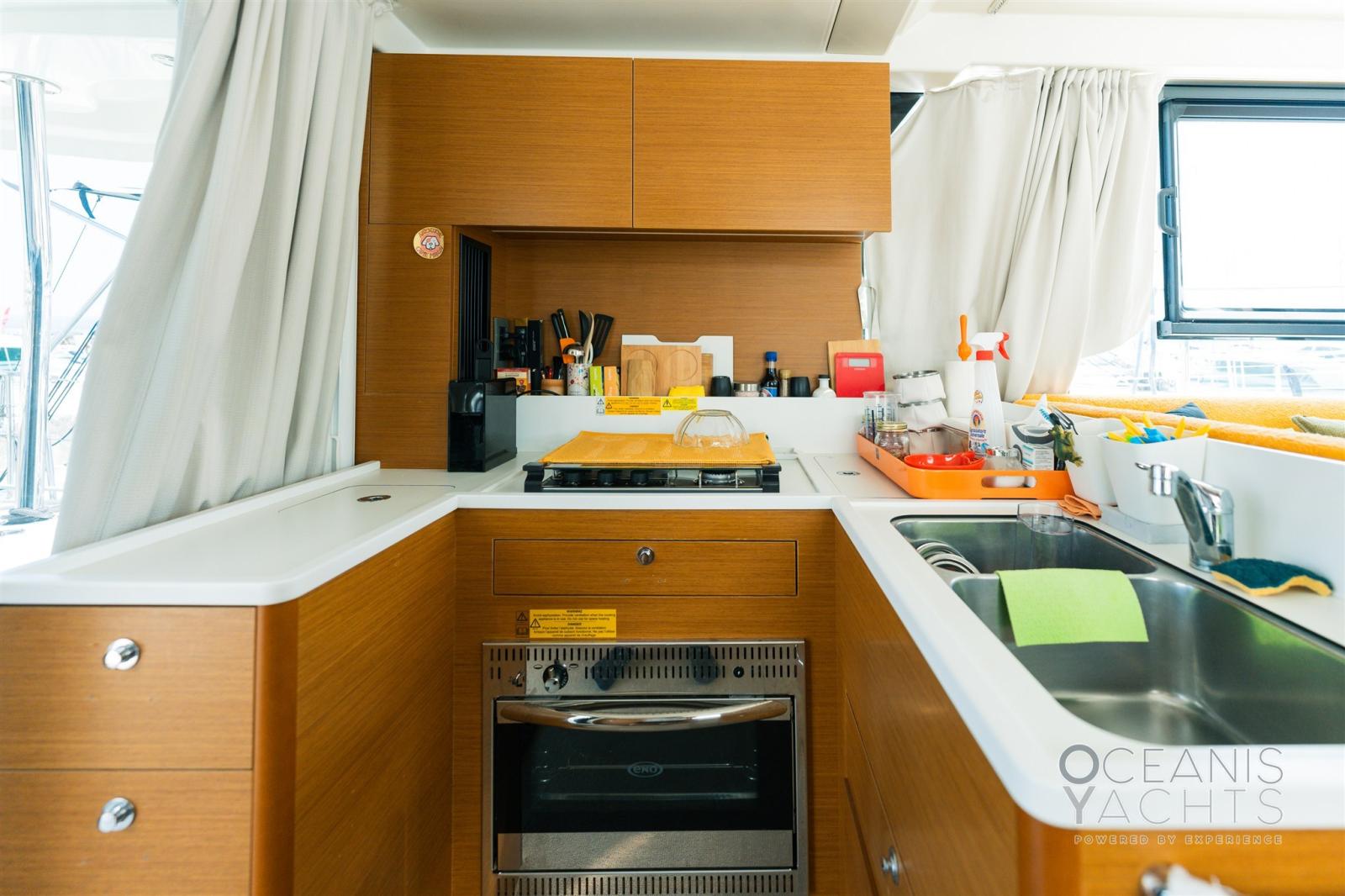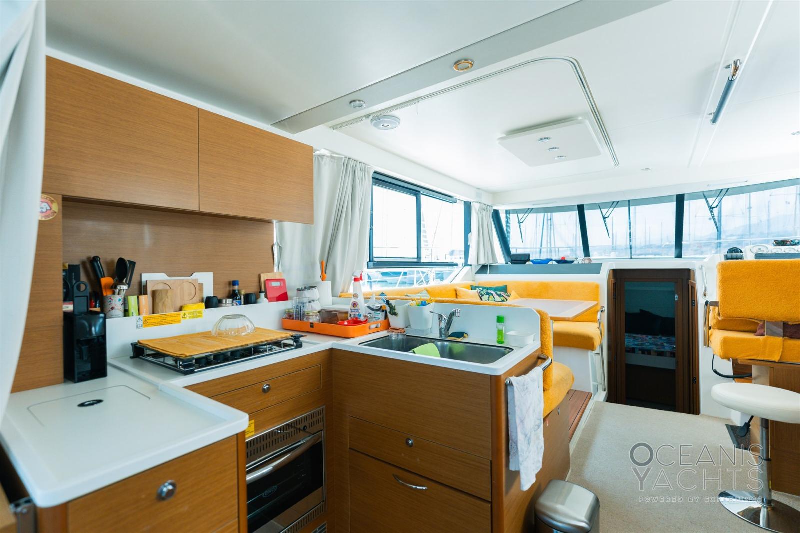 À l’intérieur, l’élégance et la fonctionnalité se mêlent à l’attention portée aux détails par Beneteau : des bois chaleureux, une cuisine en forme de L face au cockpit, un salon convertible et trois cabines - chacune conçue pour offrir intimité et tranquillité - ainsi que deux salles de bains complètes, avec des installations séparées dans la suite du propriétaire.