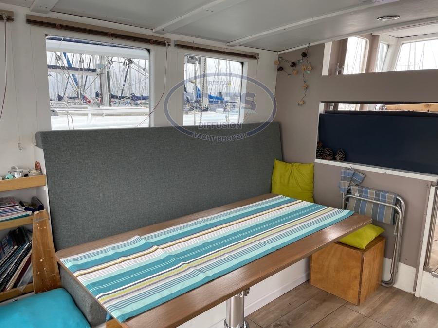 VISIBLE À LA ROCHELLE - CONTACTEZ JEAN-PIERRE OU AUDREY AU 06 09 42 34 55 - [email protected] - Construction amateur avec coque réalisée par un chantier professionnel, incluant une stratification intérieure et extérieure en époxy... Le carré est convivial et spacieux, offrant une excellente luminosité et une visibilité optimale. L’accès à bord est facilité, même pour une personne à mobilité réduite. Conçu aussi bien pour la navigation hauturière que fluviale, ce bateau est bien équipé (propulseur d’étrave, guindeau...).