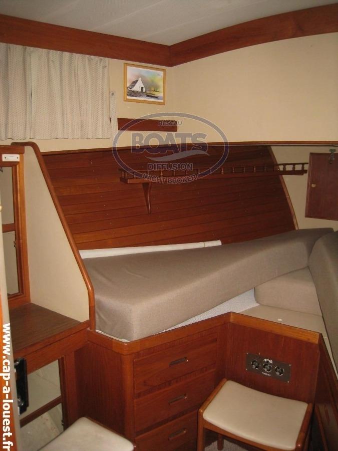 GRAND BANKS 42 Europa version 2 cabines doubles + 1 cabine "marin" 2 lits. TRAWLER équipé de stabilisateurs gyroscopiques hydraulique WESMAR permettant de limiter efficacement le roulis. Pont teck de 2018. Ensemble récent des tauds et des sellerie de carré et de cabines. Contacter Marc Le Groignec 0033 (0)672 459 922