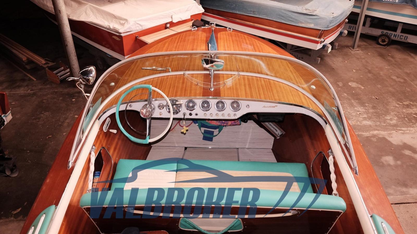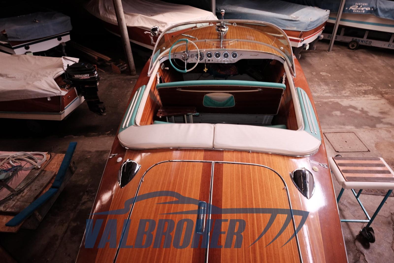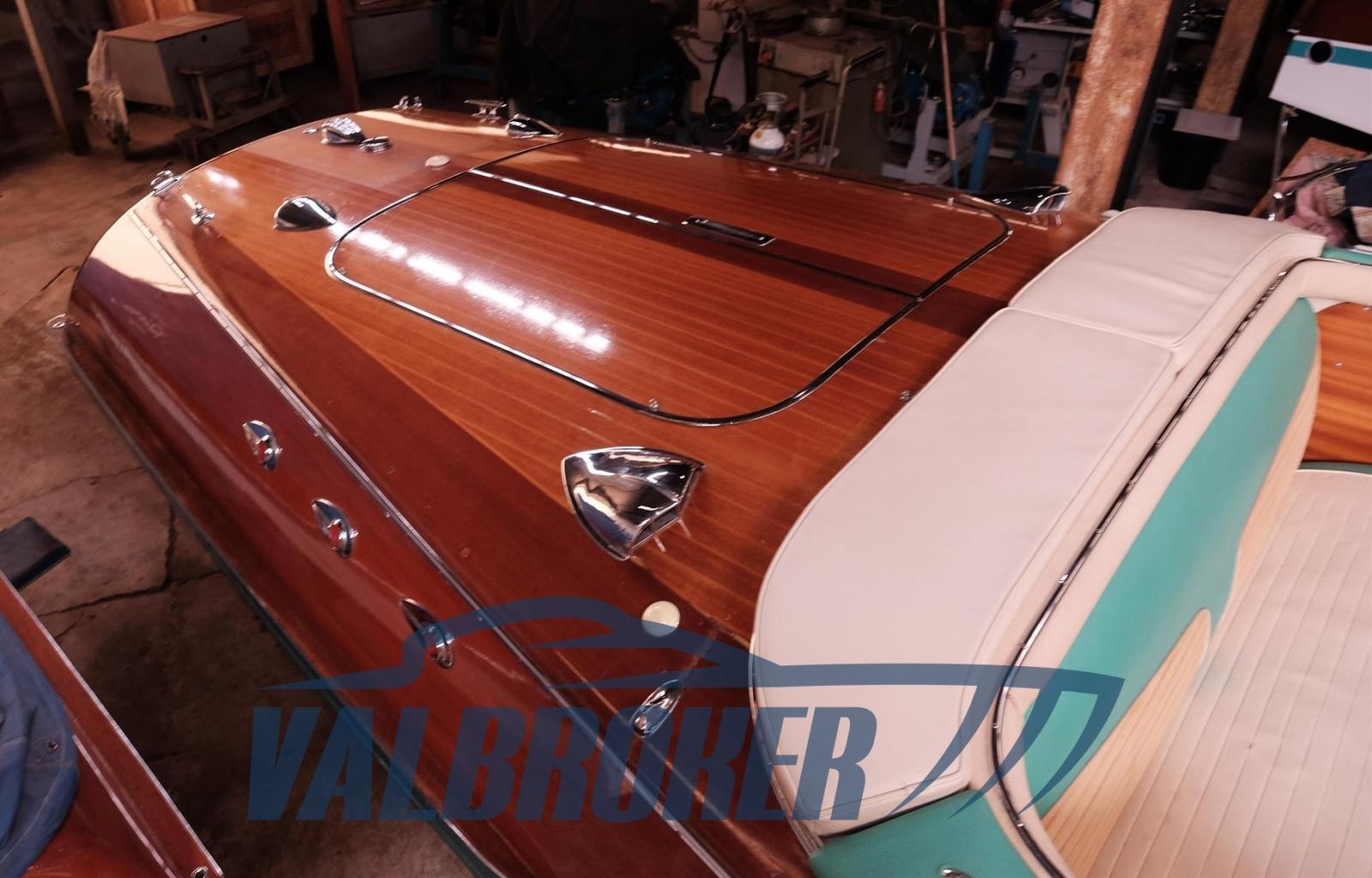 Prestigieux chantier naval italien, Riva Ariston, année 1962, première série, propulsée par 1X 175 CV Chrysler V8 Essence, visible dans le showroom au bord du lac Majeur.