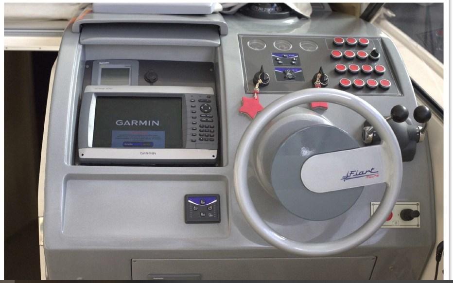 Indicateur d'angle de barre, Commande électrique (manette elettroniche), Compteur de chaîne (Quick digitale), Moniteur, Pilote automatique (Tridata autohelm ST60+), Plotter GPS (Garmin GeoMap 4010), Radio VHF (Raymarine 240E).