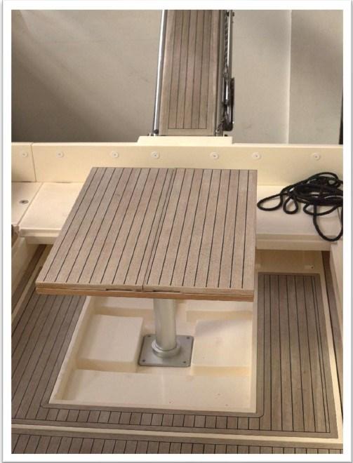 Alarme moteur, Ancre (Bruce), Eau sous pression, Chargeur de batterie (digitale Sbc), Douche de cockpit, Propulseur d'étrave (QL Volvo Penta), Phare de poursuite (elettrico Marine Sport Line), Flaps hydrauliques, Indicateurs de flaps, Lavabo dans le cockpit, Éclairage de courtoisie, Passerelle (Besenzoni idraulica telescopica), Plateforme arrière (teack), Pompe de cale automatique, Porte latérale, Cockpit en teck, Prise de quai, Connexion eau sous pression à quai, Rollbar, Guindeau électrique, Echelle de bain, table de cockpit (a scomparsa), Table pliante de salon (trasformabile in matrimoniale), Corne.