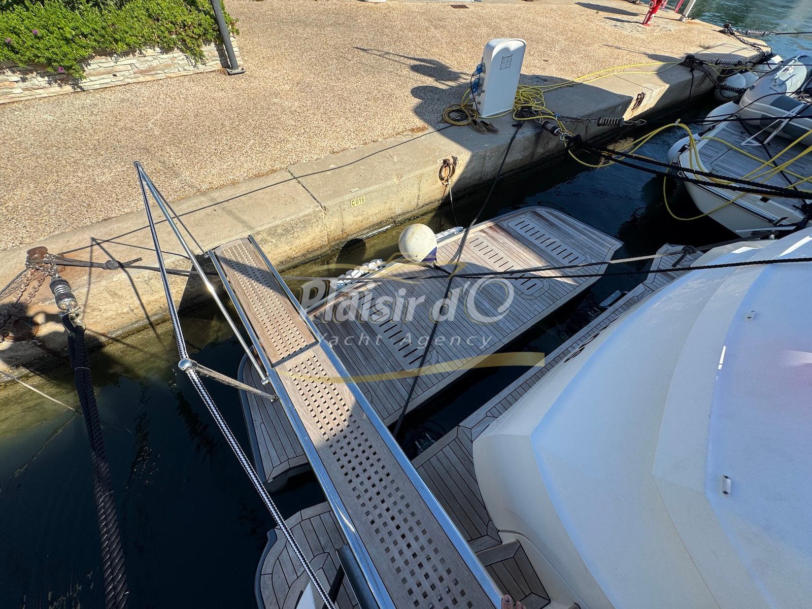 TOUTES OPTIONS : grosse motorisation Volvo Penta D13-900cv, yacht controller, Seakeeper, propulseur de poupe et de proue, climatisation reversible, désalinisateur, passerelle hydraulique rétractable, plate-forme de bain immergeable, générateur 11KW, GPS, radar, VHF, cockpit/plateforme de bain / pont en teck Refaits à neuf, peinture de coque récente, sellerie récente, 3 TV, machine à laver le linge, lave vaisselle, four micro ondes, peinture de coque récente , icemaker, store électrique, garage à annexe avec treuil électrique, flaps neuve, batterie service récentes …