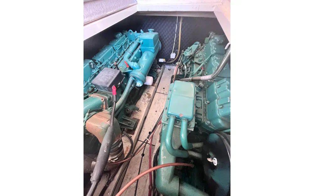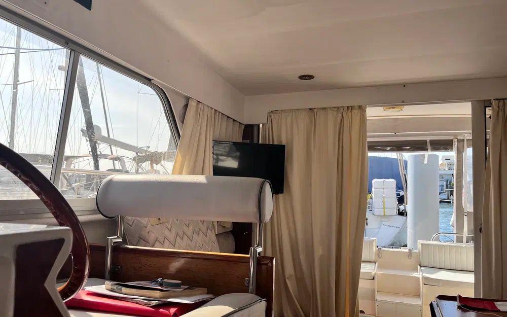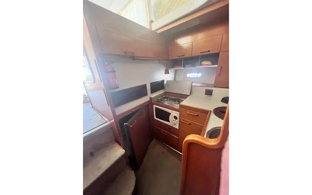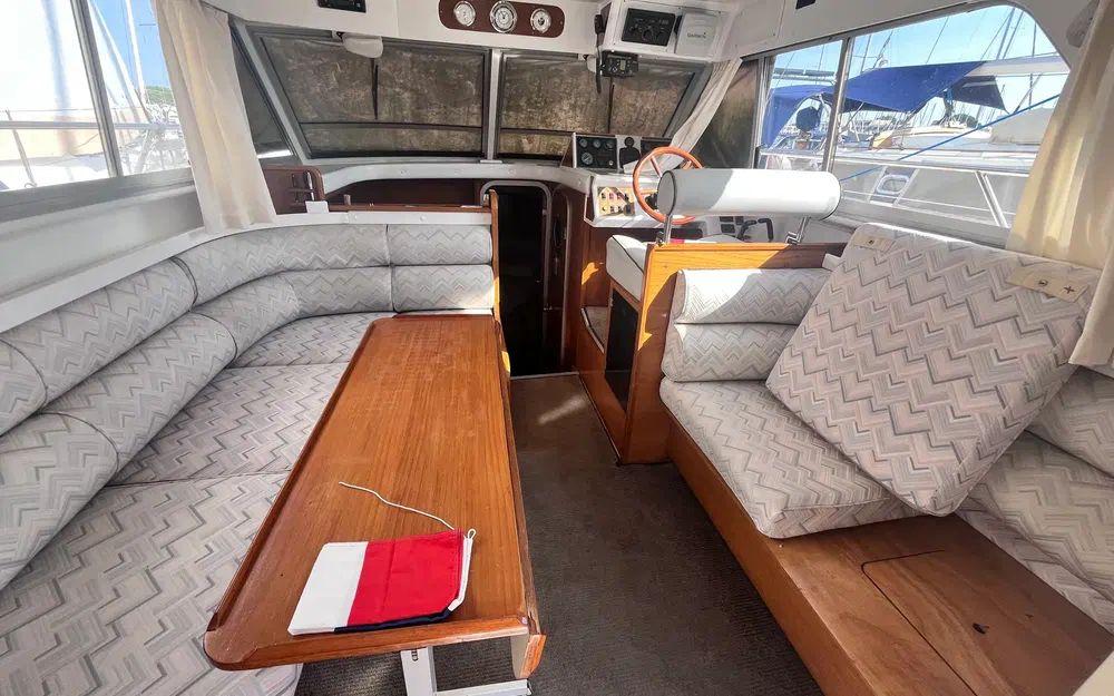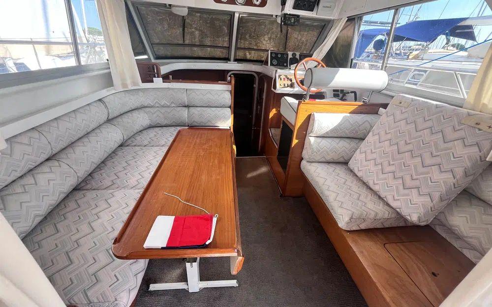 Côté technique, rien n’a été laissé au hasard : deux moteurs Volvo TAMD 41 diesel de 200 cv chacun, seulement 1400 heures au compteur, pour filer sur l’eau avec puissance et fiabilité. À bord, tout y est pour une navigation paisible : propulseur d’étrave, guindeau électrique, flaps, pilote automatique, GPS, VHF, et j’en passe ! Besoin de vous sentir comme à la maison ? La cuisine est équipée d’une micro-onde, cuisinière, four, et le coin salon se transforme au gré de vos envies. Vous profitez également d'une radio CD, antenne TV, prises 220V et 12V, chargeurs de batteries, sans oublier un grand nombre d’espaces de rangement et équipements de sécurité.