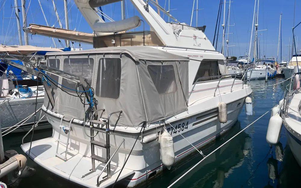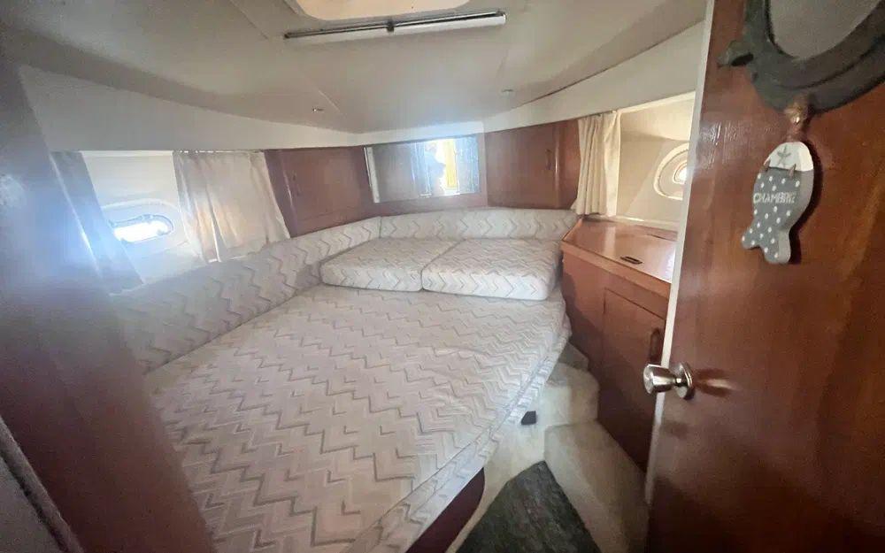 Avec ses 9,40 mètres de longueur et 3,40 mètres de largeur, ce Princess offre un superbe volume et peut accueillir jusqu’à 8 passagers. Que vous partiez naviguer entre amis ou en famille, l’ambiance est garantie ! Passez la nuit à bord en toute sérénité grâce à une cabine spacieuse, 4 lits confortables et une salle de bain bien pensée.