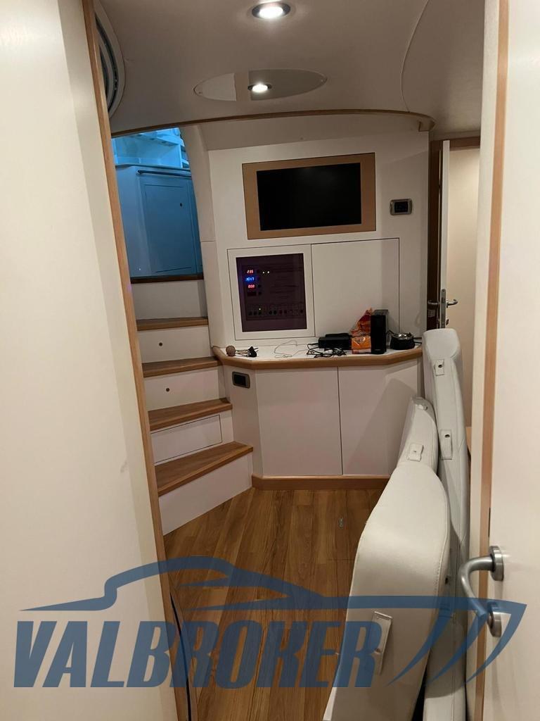 Eau sous pression, 8 Batteries, Hard top (apribile elettricamente), Passerelle (idraulica, inox), Plateforme arrière, Cockpit en teck, Prise de quai, Echelle de bain, table de cockpit.