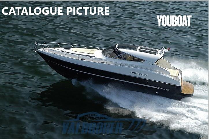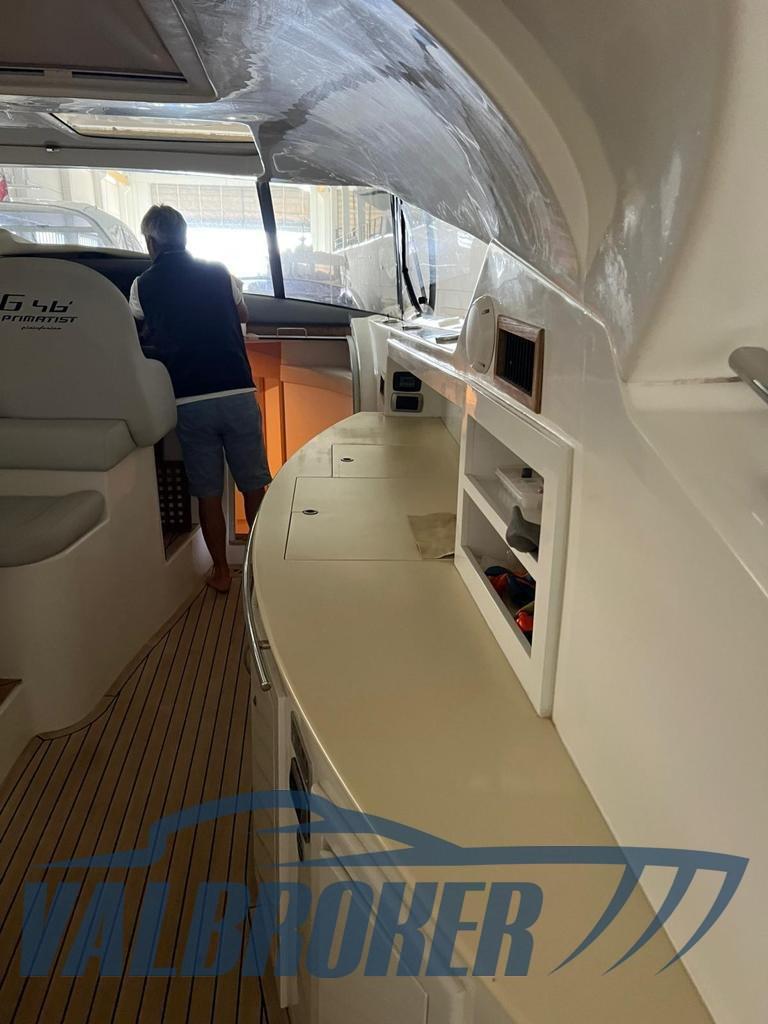 Abbé Bruno Primatiste 46 visible en Sardaigne. 2 moteurs Volvo Penta IPS 600 avec seulement 346 heures de moteur. Deux cabines doubles avec salles de bains, deux lits dans la dînette.
