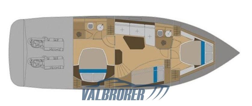 Complet en option : climatisation, propulseur d’étrave, générateur, pilote automatique, hard top à ouverture électrique.