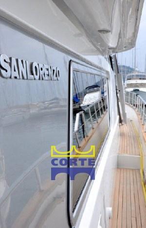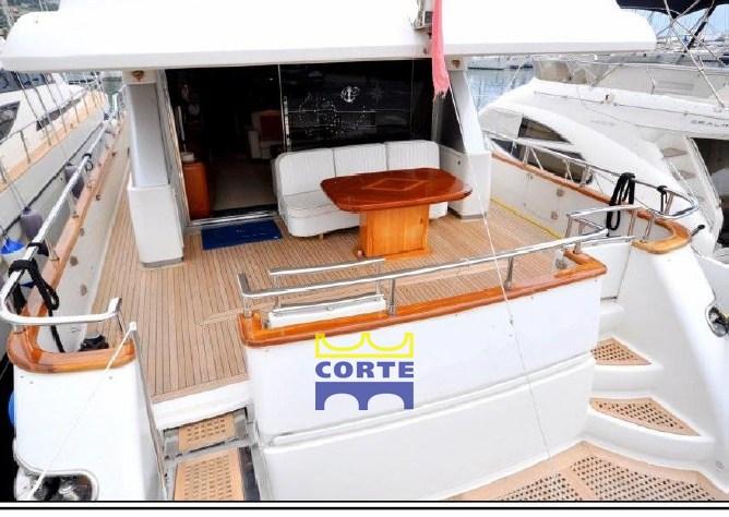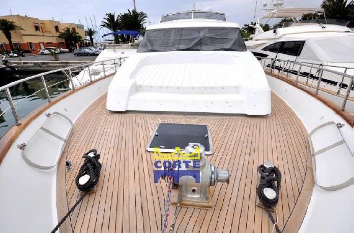 Alarme gaz, Alarme moteur, Alarme de pompe de cale, Ancre (BRUCE 50 kg con 120 m di catena), Douche de cockpit, Double barre à roue, Flaps électriques (BSC), Bossoirs (Besenzoni 600 kgsul fly), Éclairage de courtoisie, Passerelle (idraulica Besenzoni), Plateforme arrière (in teak), Pompe de cale automatique, Pompe de cale manuelle, Porte latérale, Porte latérale, Cockpit en teck, Prise de quai, Guindeau électrique, Echelle de bain, table de cockpit, Annexe, Winch (da tonneggio LOFRANS 24v/2000 W).