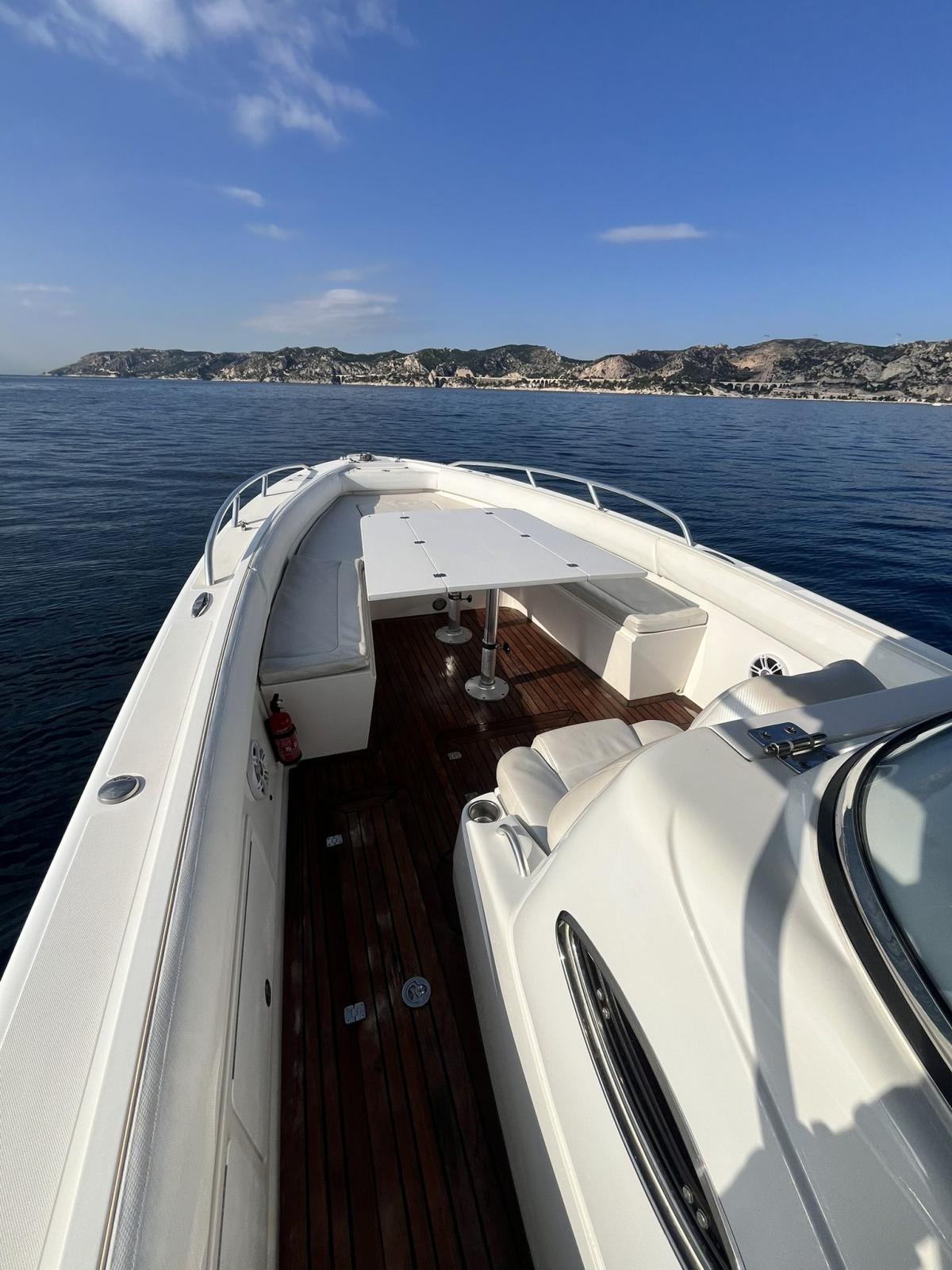 Motorisé par deux moteurs Mercury ME300HP, il offre une navigation fluide et puissante, idéale pour des sorties en mer en toute sérénité. Son design soigné et ses équipements de qualité en font le choix parfait pour profiter de moments de détente et de convivialité en famille ou entre amis.
