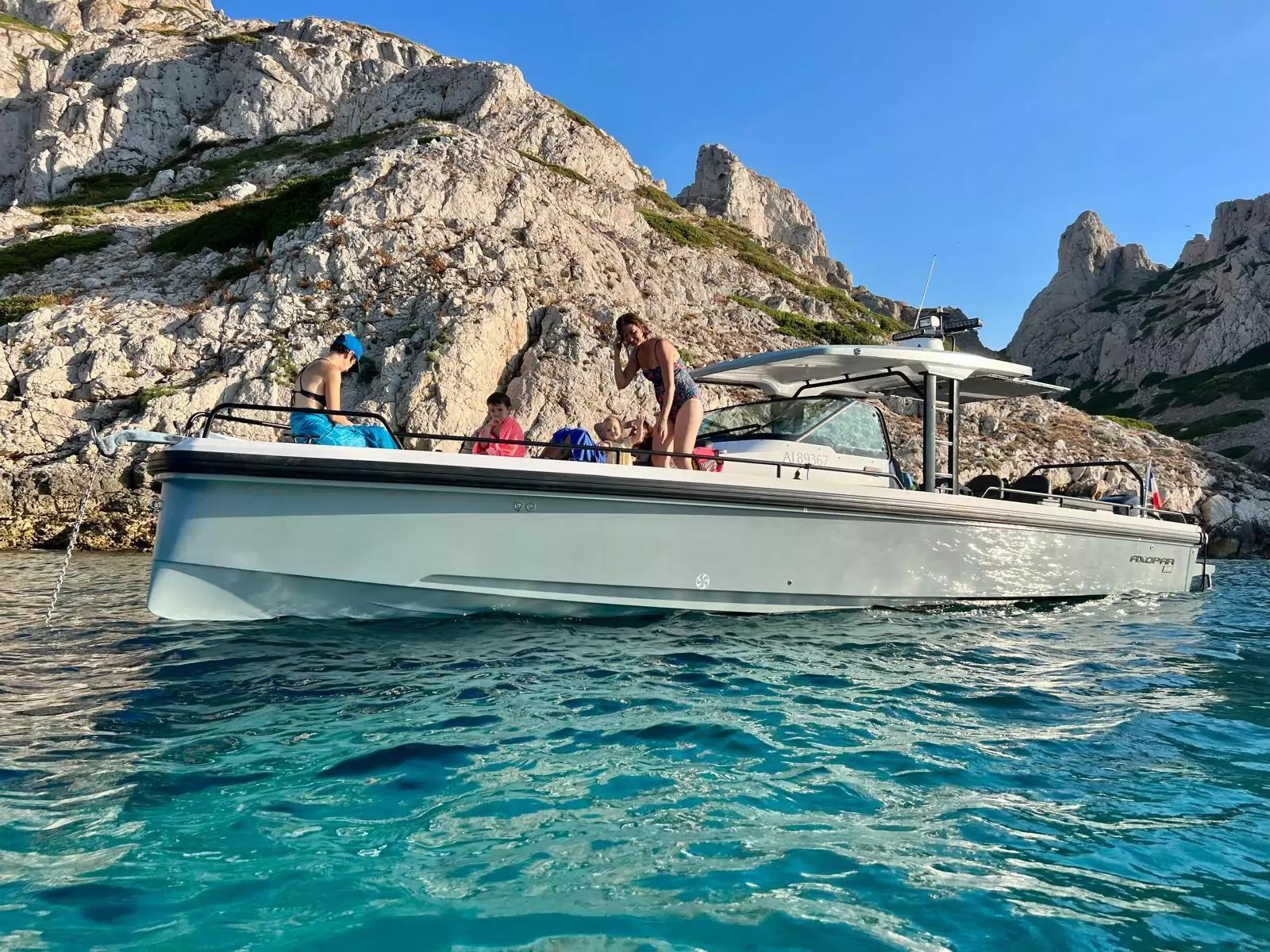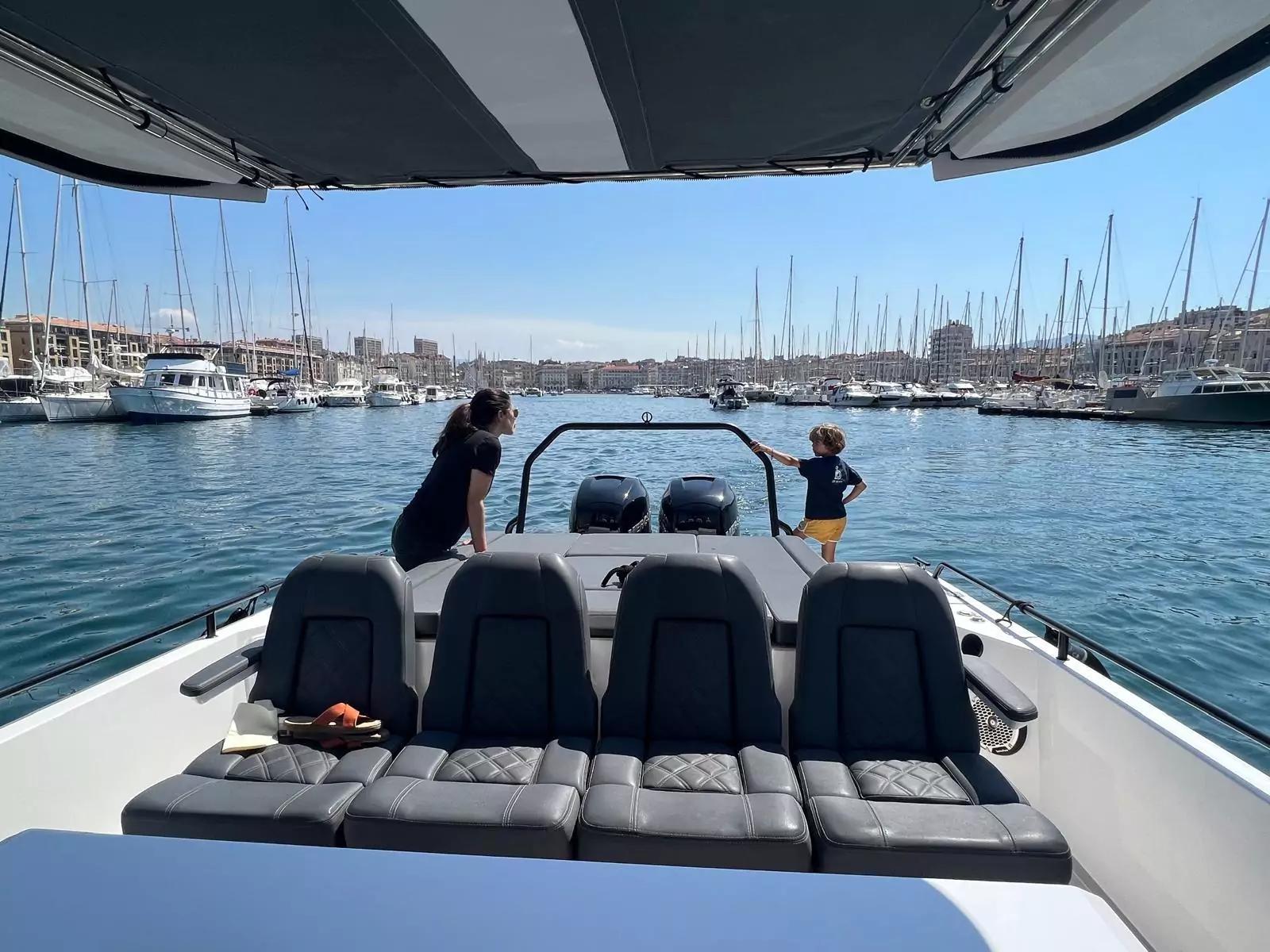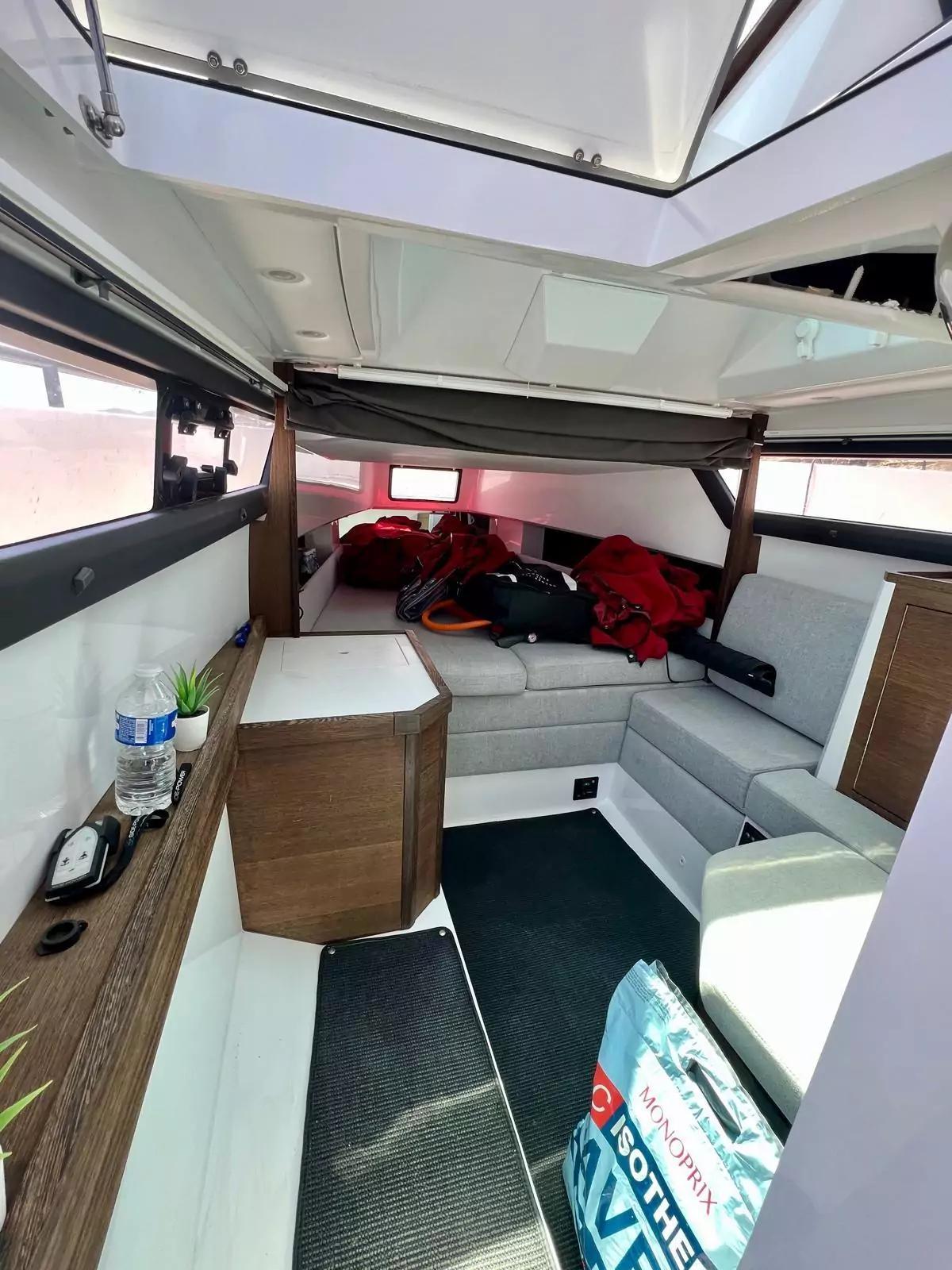 Avec ses 11,50 m de long et 3,35 m de large, l’Axopar 37 Sun-Top garantit une excellente stabilité en mer et un aménagement optimisé pour la vie à bord. Il peut accueillir jusqu’à 12 passagers et dispose de 4 couchages confortables, répartis entre une cabine avant lumineuse et une cabine arrière indépendante.