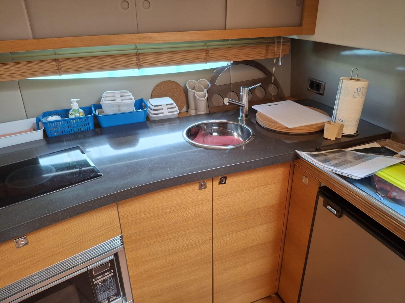 Alarme moteur, Eau sous pression, 4 Batteries, Douche de cockpit, Phare de poursuite, Flaps hydrauliques, Hard top, Extincteur(s) fixe(s), Spots sous-marins, Passerelle, Plateforme arrière, Pompe de cale automatique, 2 Pompe de cale électrique, 2 Pompe de cale manuelle, Onduleur, Guindeau électrique, Echelle de bain, table de cockpit, Annexe (con FB el).