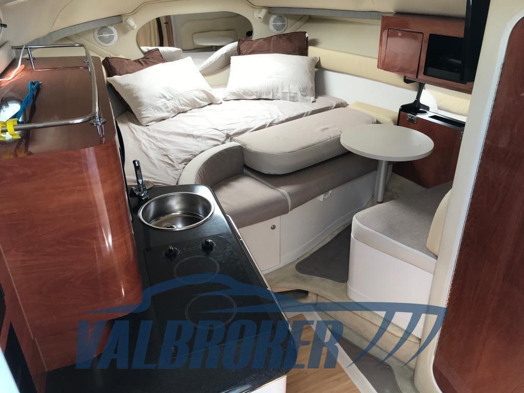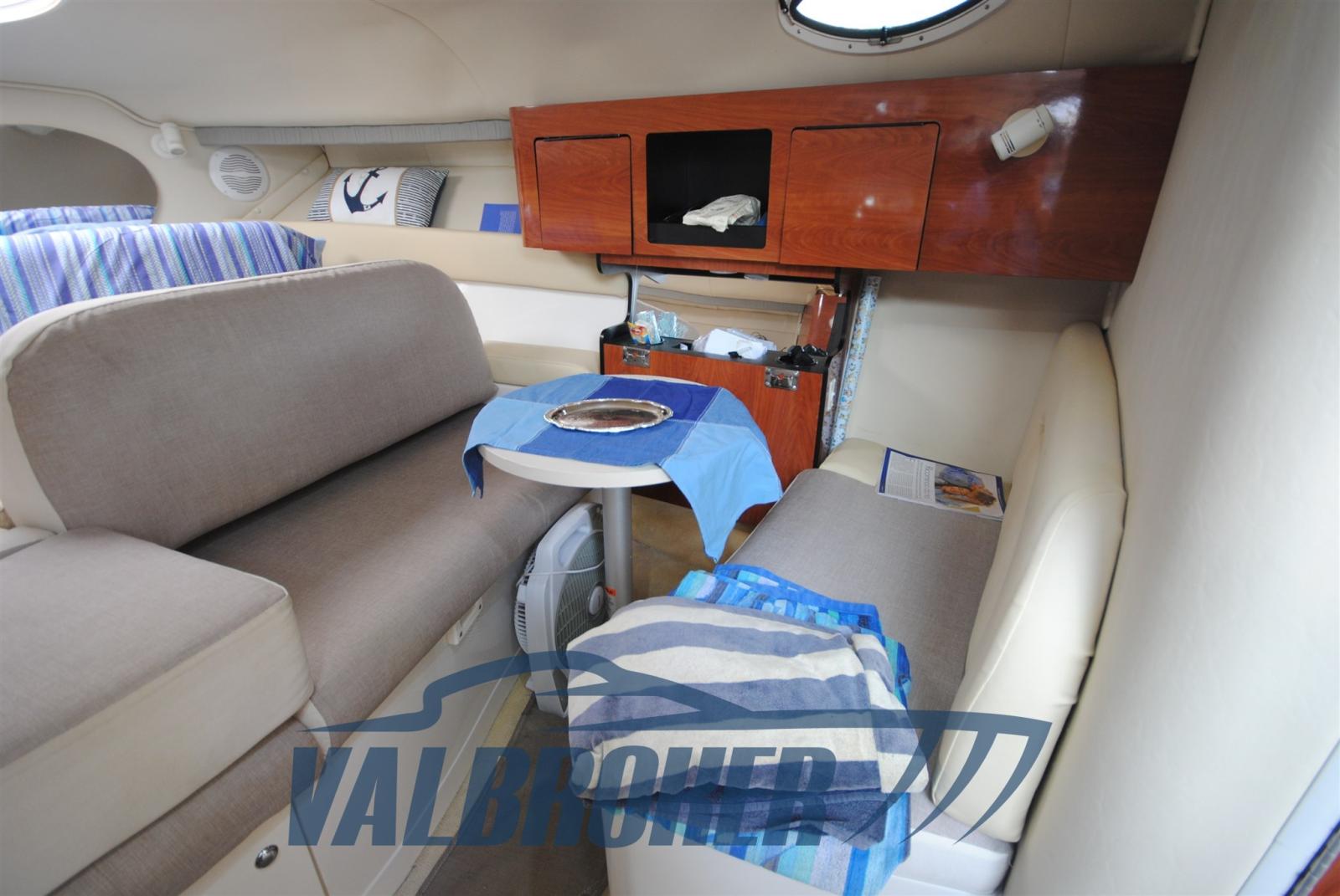 Monterey 282 construit en 2005, bateau non plaqué. Propulsé par 2x270 ch Volvo Penta, SEULEMENT 500 heures de conduite. Cabine double au milieu du navire et deuxième cabine double à l’avant. Idéal pour les courtes croisières.