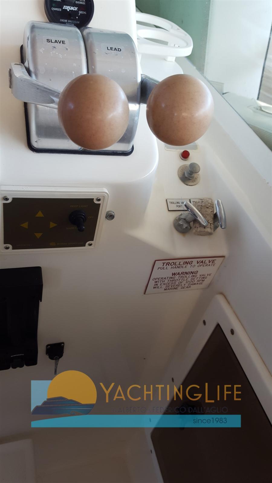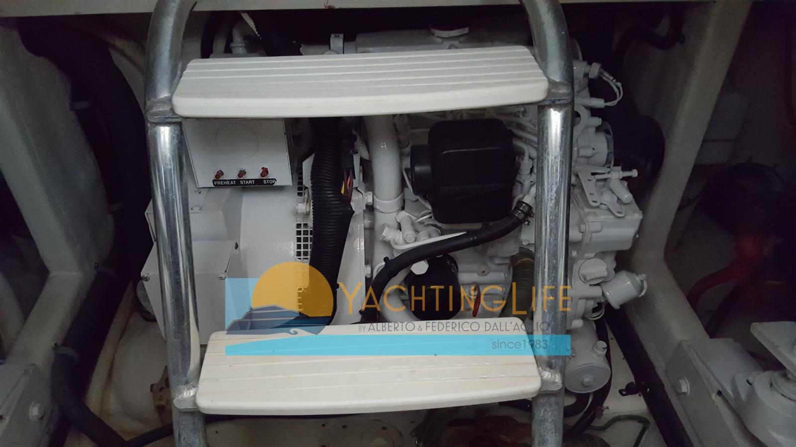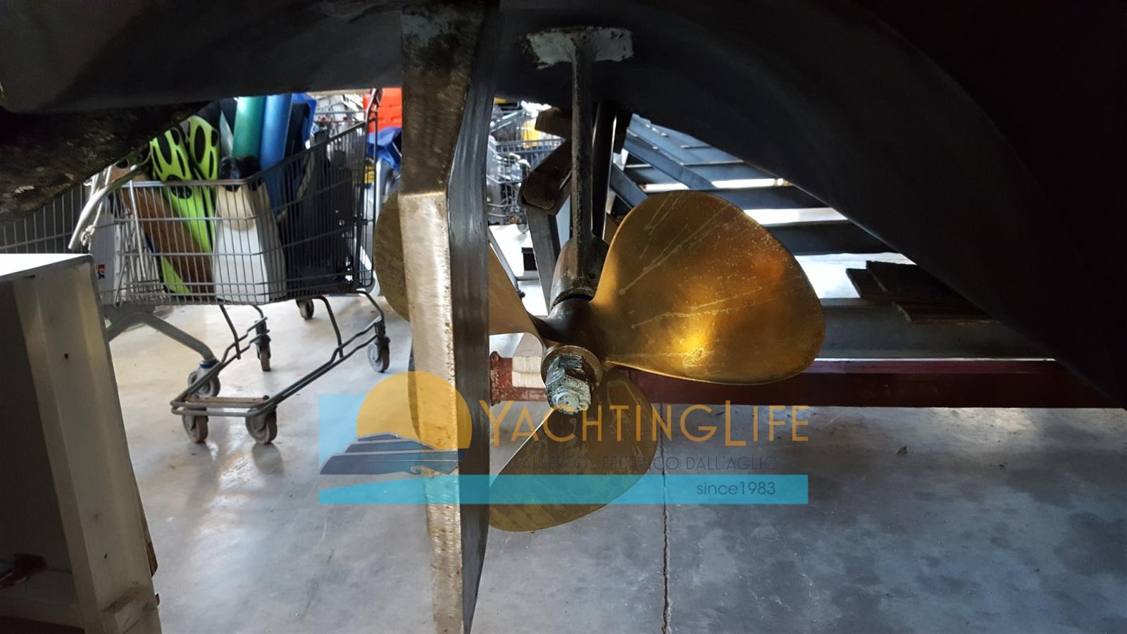 Alarme moteur, Eau sous pression (N. 1), Couleur spéciale (Blu), Douche de cockpit, Flaps hydrauliques (N. 2), Extincteur(s) fixe(s), Éclairage de courtoisie, Passerelle (Manuale), Plateforme arrière, Pompe de cale automatique, Porte latérale, Prise de quai, Rollbar, Guindeau électrique, Echelle de bain, Corne.
