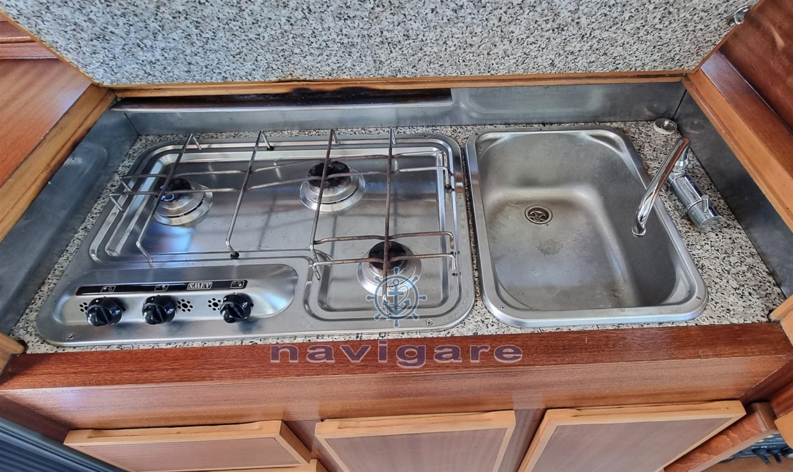 Alarme moteur, Alarme de pompe de cale, Eau sous pression, 5 Batteries, Douche de cockpit, Flaps hydrauliques, Bossoirs, Passerelle (IDRAULICA OPACMARE), Plateforme arrière, Pompe de cale automatique, Cockpit en teck, Prise de quai, Connexion eau sous pression à quai, Onduleur, Guindeau électrique, Echelle de bain, table de cockpit, Annexe (2.60 m).
