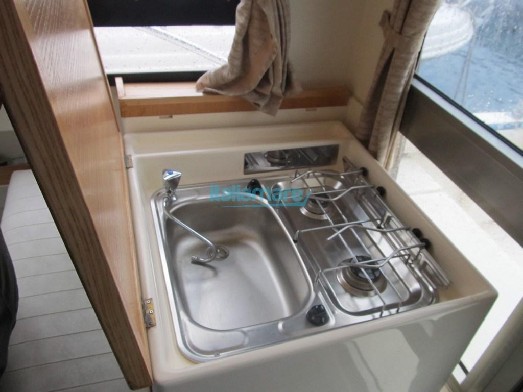 Alarme moteur, Alarme de pompe de cale, Eau sous pression, Douche de cockpit, Double barre à roue, Flaps électriques, Éclairage de courtoisie, Plateforme arrière, Pompe de cale automatique, Pompe de cale manuelle, Porte latérale, Prise de quai, Connexion eau sous pression à quai, Guindeau électrique, Echelle de bain.