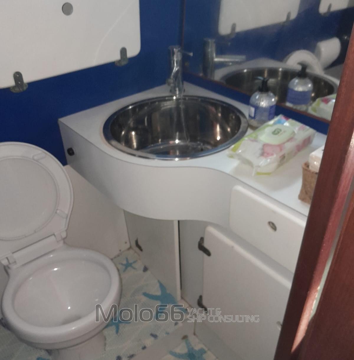 Alarme moteur, Alarme de pompe de cale, Eau sous pression, 4 Batteries, Douche de cockpit, Double barre à roue, Flaps hydrauliques, Bossoirs, Passerelle, Plateforme arrière, Pompe de cale automatique, Cockpit en teck, Prise de quai, Guindeau électrique, Echelle de bain, Corne.