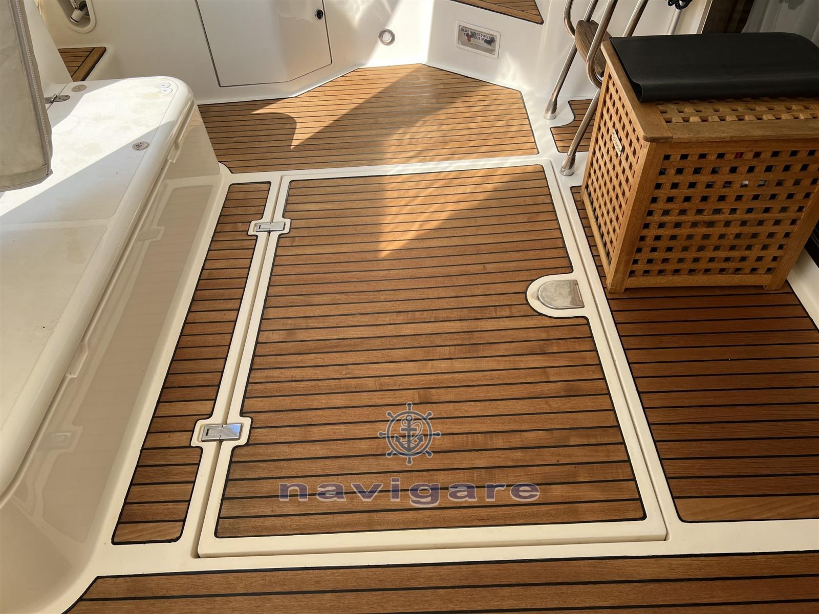 Alarme moteur, Eau sous pression, Douche de cockpit, 2 Flaps hydrauliques, Éclairage de courtoisie, Passerelle, Plateforme arrière, Pompe de cale automatique, Pompe de cale manuelle, Cockpit en teck, Prise de quai, Connexion eau sous pression à quai, Guindeau électrique, Echelle de bain.
