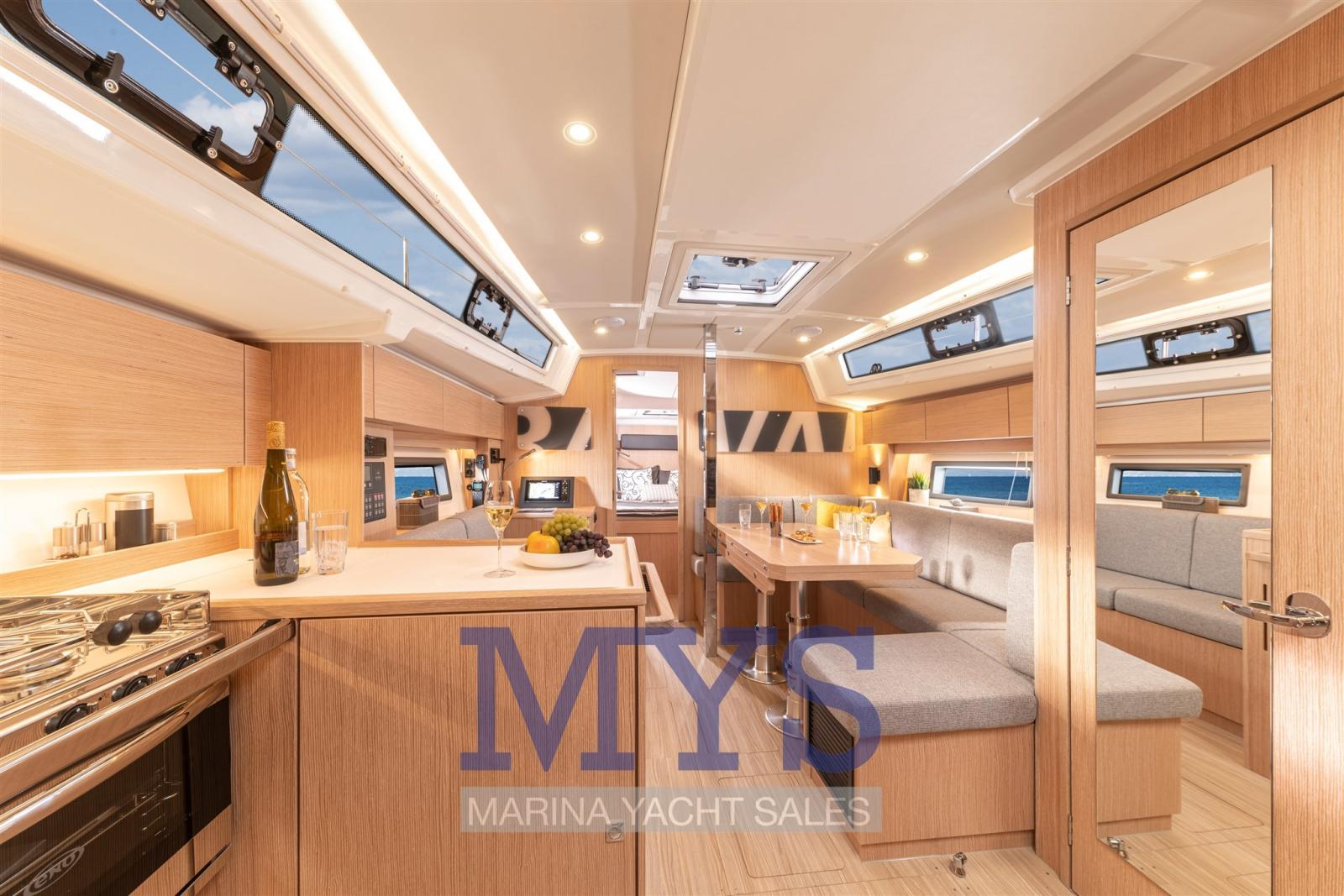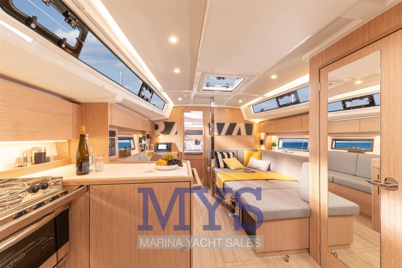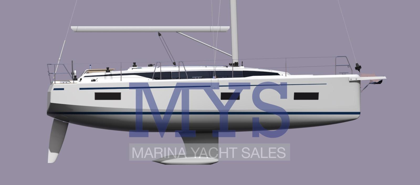Alarme moteur, Eau sous pression, Douche de cockpit, Double barre à roue, Plateforme arrière, Pompe de cale automatique, Pompe de cale manuelle, Prise de quai, Guindeau électrique, Gréement monotoron, Echelle de bain, table de cockpit, Table pliante de salon.