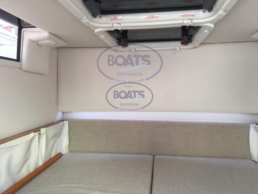 Frigo, 2 tables cockpit avant et arrière, Propulseur d'étrave, toilette,
