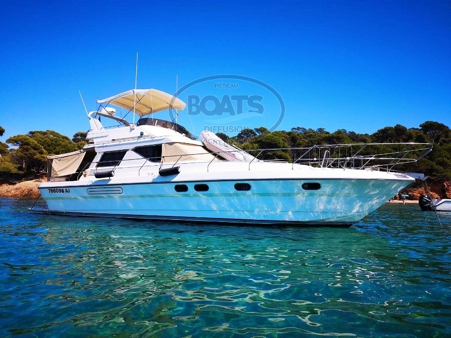 Superbe PRINCESS 45 Fly, parfaitement entretenu. Propulsé par deux Caterpillar 2x375cv fiable et robuste qui bénéficie d'une faible consommation car équipé du Cracking hydrogène L’intérieur du bateau , toutes les menuiseries ainsi que les vaigrages sont en parfait état... Propriétaires méticuleux, soigneux rien n'a été laissé au hasard.. Le chantier Anglais Princess est réputé pour sa qualité de construction. Modèle trois cabines avec une grande habitabilité, il sera l'unité idéal pour les croisières en famille au programmes de navigation côtier ou Hauturier.