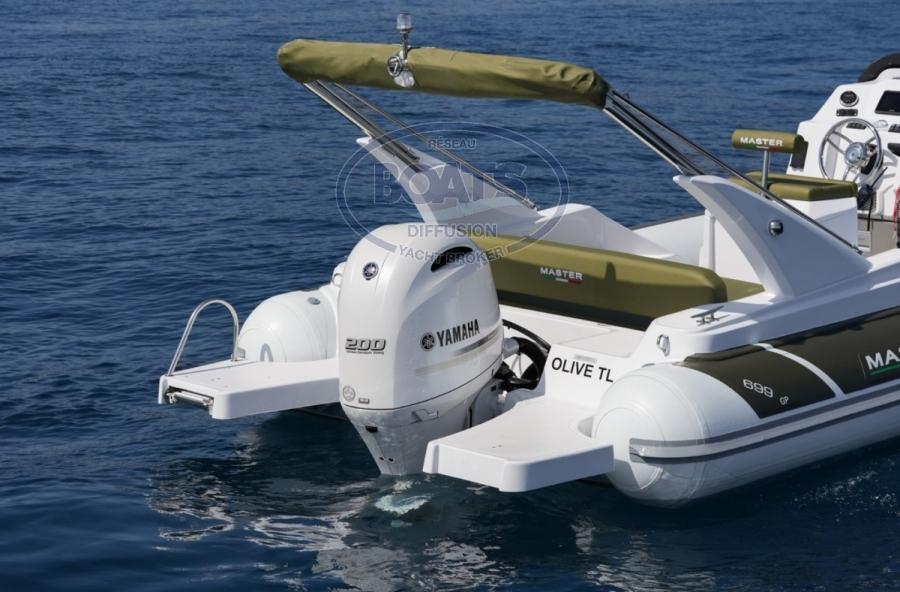 MASTER 699 GT de 2024. propulsé par un YAMAHA de 200 cv ayant juste 297 heures de navigation. Sa coque offre a cette unité de la vélocité et un pilotage ludique. Un comportement sain, sécurisant et au passage en mer confortable. Poignée électrique - Direction hydraulique Guindeau électrique - Grand bain de soleil avant Taud de soleil - Banquette arrière - Spacieuses plateformes arrière avec échelle de bain - Mât inox de ski/wake - Douchette de pont VHF - Combiné GPS sondeur Garmin. Poste radio avec système Bluetooth et hauts parleurs Frigo tiroir - Chargeur de téléphone à induction - Prises allume cigare et USB Capacité du réservoir d'essence : 220 Litres - Capacité du réservoir d'eau douce : 77 Litres Bateau entretenu par un professionnel il est dans un état irréprochable.
