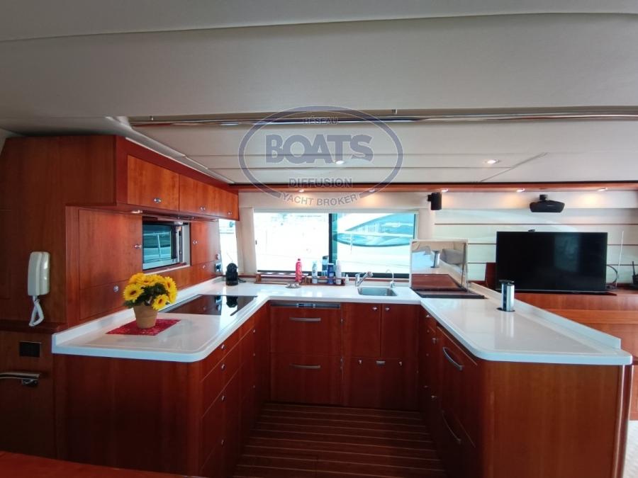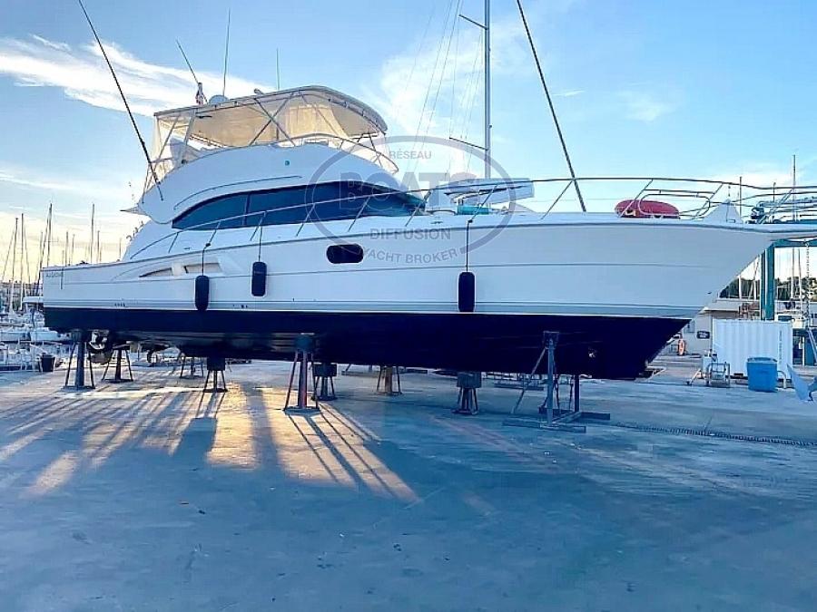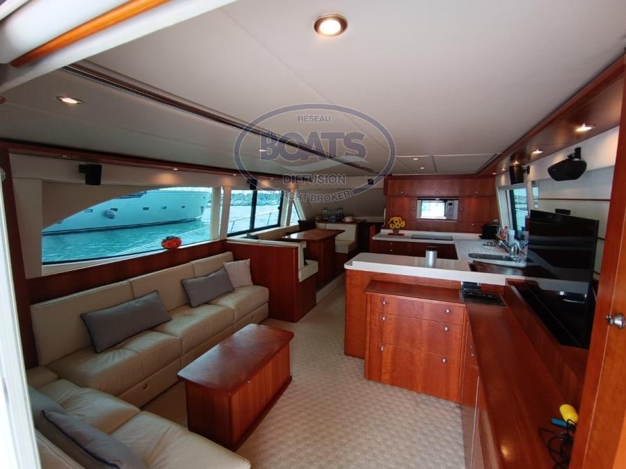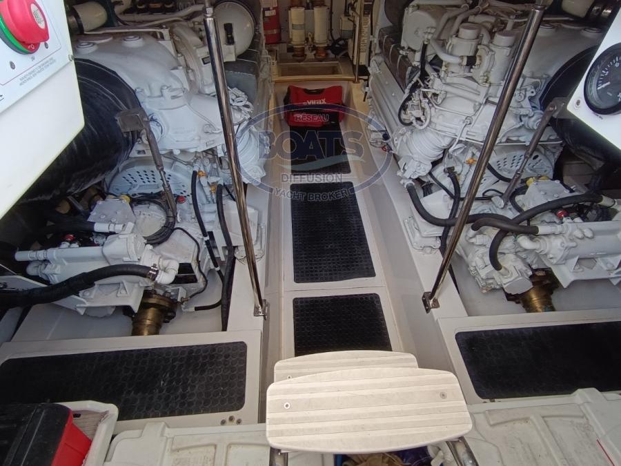 Magnifique RIVIERA 58 Open Flybridge en excellent état, toutes options. idéal pour la pêche au gros et les croisières en famille. Vedette de luxe construite par le célèbre chantier australien Riviera Marine. Entretien soigné, état impeccable. Propulsé par deux moteurs MTU 8V 2000-M93. Confortable avec ses 3 superbe cabines (6 couchages) avec 3 salles d'eau, climatisation réversible. (Antenne satellite TV, Hi-Fi (Fusion), Radio AM/FM (Fusion), 3 x TV) (Lave-vaisselle, lave-linge/sèche-linge, four, micro-ondes et plaque de cuisson à induction, 4 frigos + 1 frigo au Flybridge.