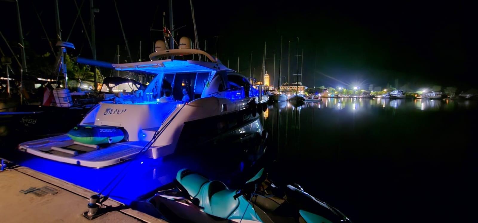 2 Alarme moteur, Alarme de pompe de cale, Ouverture du compartiment moteur électrique (sala macchine ,locale tecnico , locale stiva tutti alzabili elettricamente), Eau sous pression, Batteries (nuove 2022), Couleur spéciale (blu), Douche de cockpit, 2 Flaps hydrauliques, Hard top (con tettuccio apribile), Extincteur(s) fixe(s), Indicateurs de flaps, Éclairage de courtoisie, Spots sous-marins, 2 Panneau solaire, Passerelle (a scomparsa), Plateforme arrière (tenderlift), Pompe de cale automatique, Porte latérale, Cockpit en teck, Prise de quai, Connexion eau sous pression à quai, Onduleur, Guindeau électrique, Echelle de bain, table de cockpit (abbattibile), Table pliante de salon (12 persone), Corne, T-Top, Winch électrique avant.