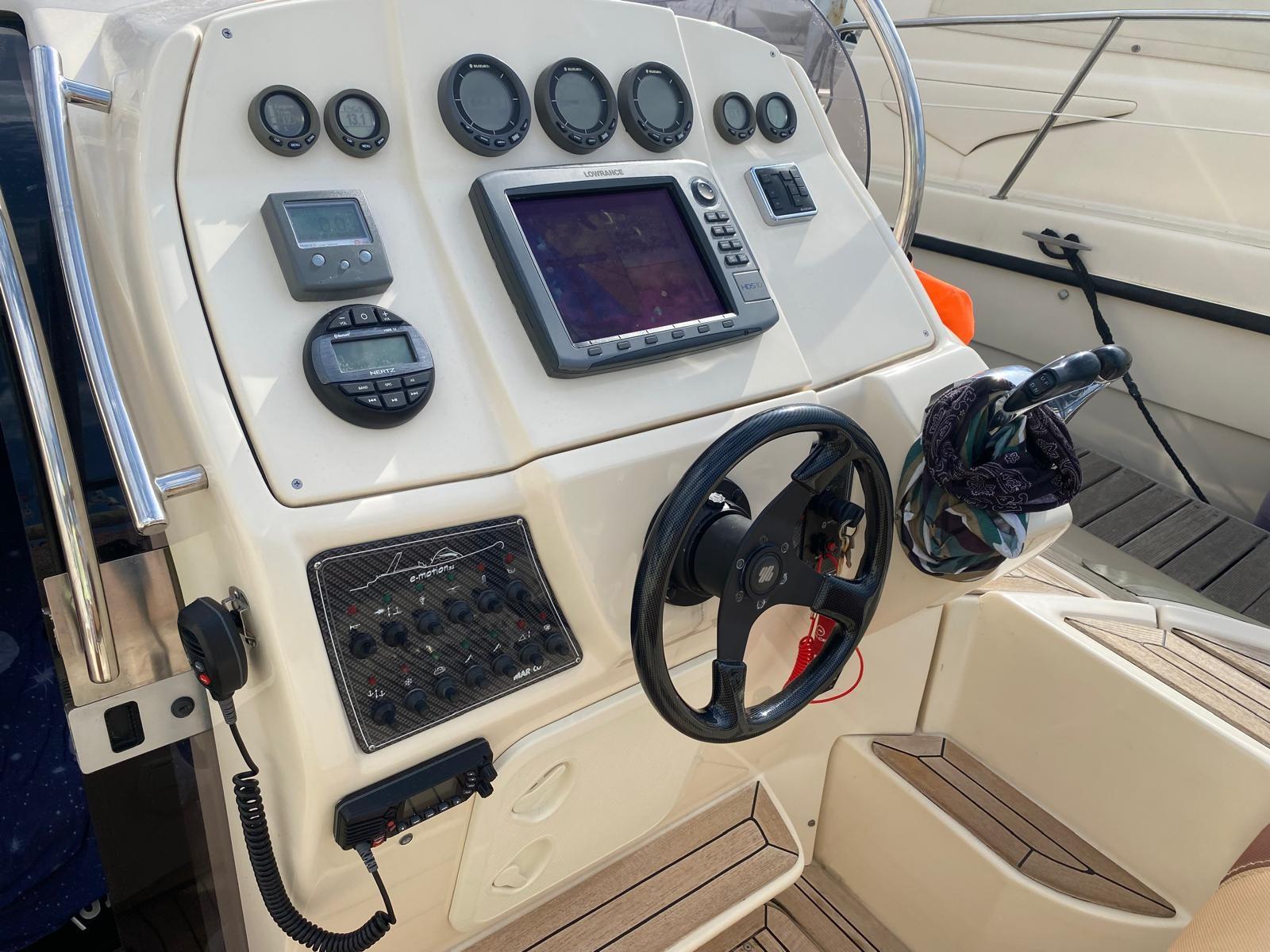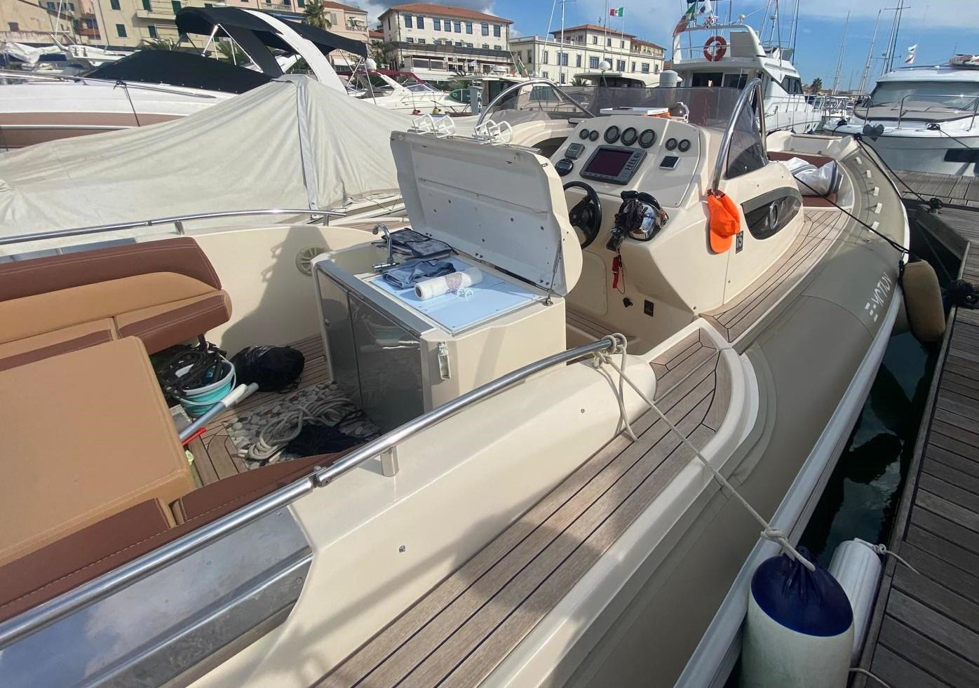 Alarme moteur, 4 Batteries (2 motori + 2 servizi), Passavant en teck, Douche de cockpit, Éclairage de courtoisie, Plateforme arrière, Cockpit en teck, Prise de quai, Rollbar (in VTR), Guindeau électrique, Echelle de bain, Table, Corne.